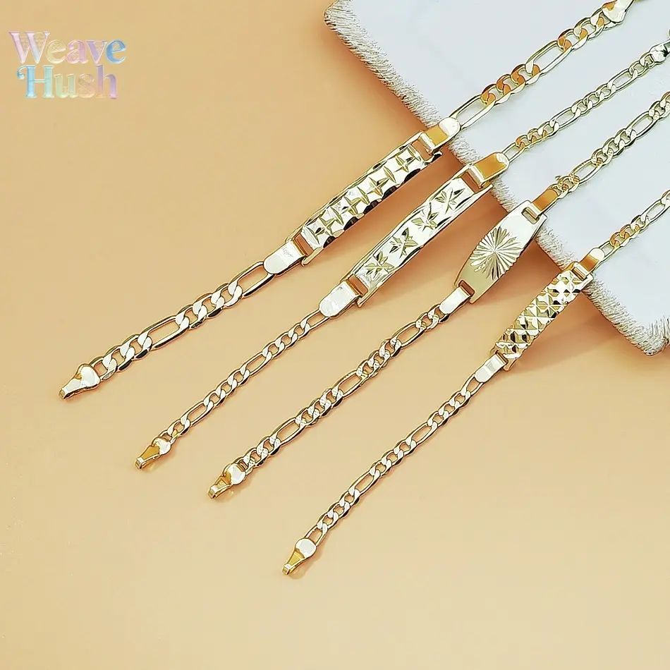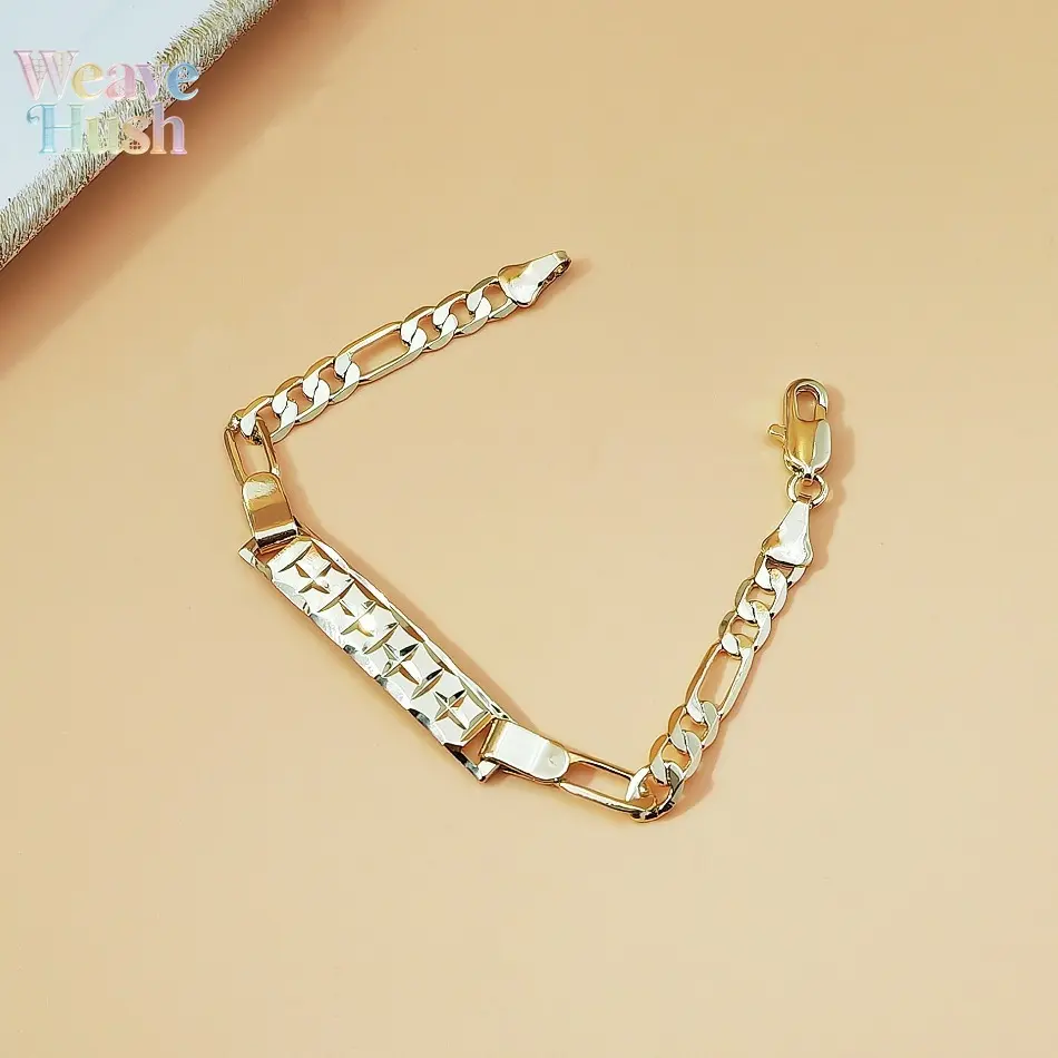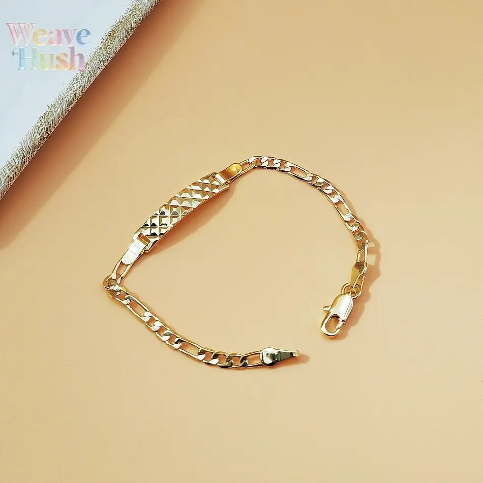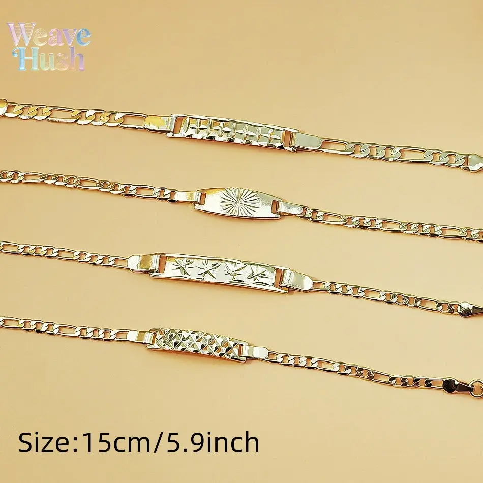 18K Gold Plated Figaro Chain Bracelet, Vintage Engraved ID Tag Cuban Link Chain, Trendy Y2K Minimalist Unisex Jewelry, Hip Hop Streetwear Fashion Bracelet for Men & Women, Durable Waterproof Daily Wear Accessory for Parties, Dating & Casual Outfits