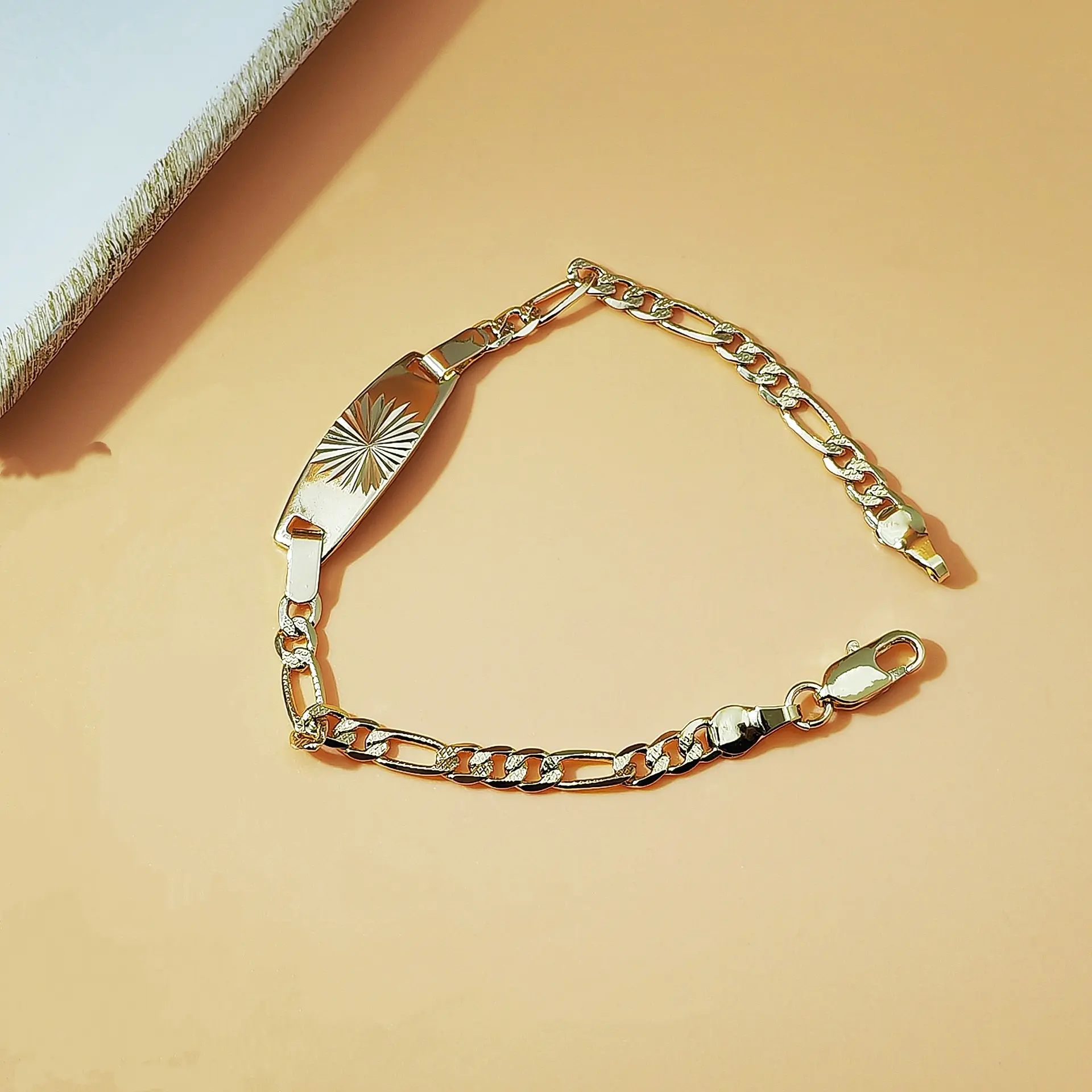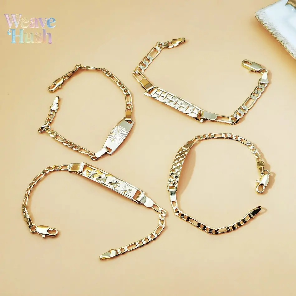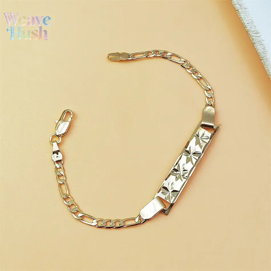 18K Gold Plated Figaro Chain Bracelet, Vintage Engraved ID Tag Cuban Link Chain, Trendy Y2K Minimalist Unisex Jewelry, Hip Hop Streetwear Fashion Bracelet for Men & Women, Durable Waterproof Daily Wear Accessory for Parties, Dating & Casual Outfits