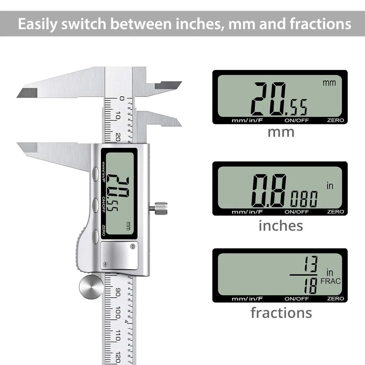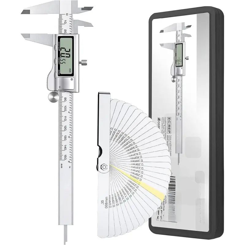 Digital Vernier Caliper 6inch/150mm + 32 Feeler Gauges Dial Caliper Caliper Fraction/Inch/Metric Electronic Caliper Measuring Tool for Length Width Depth Inner Outer Diameter