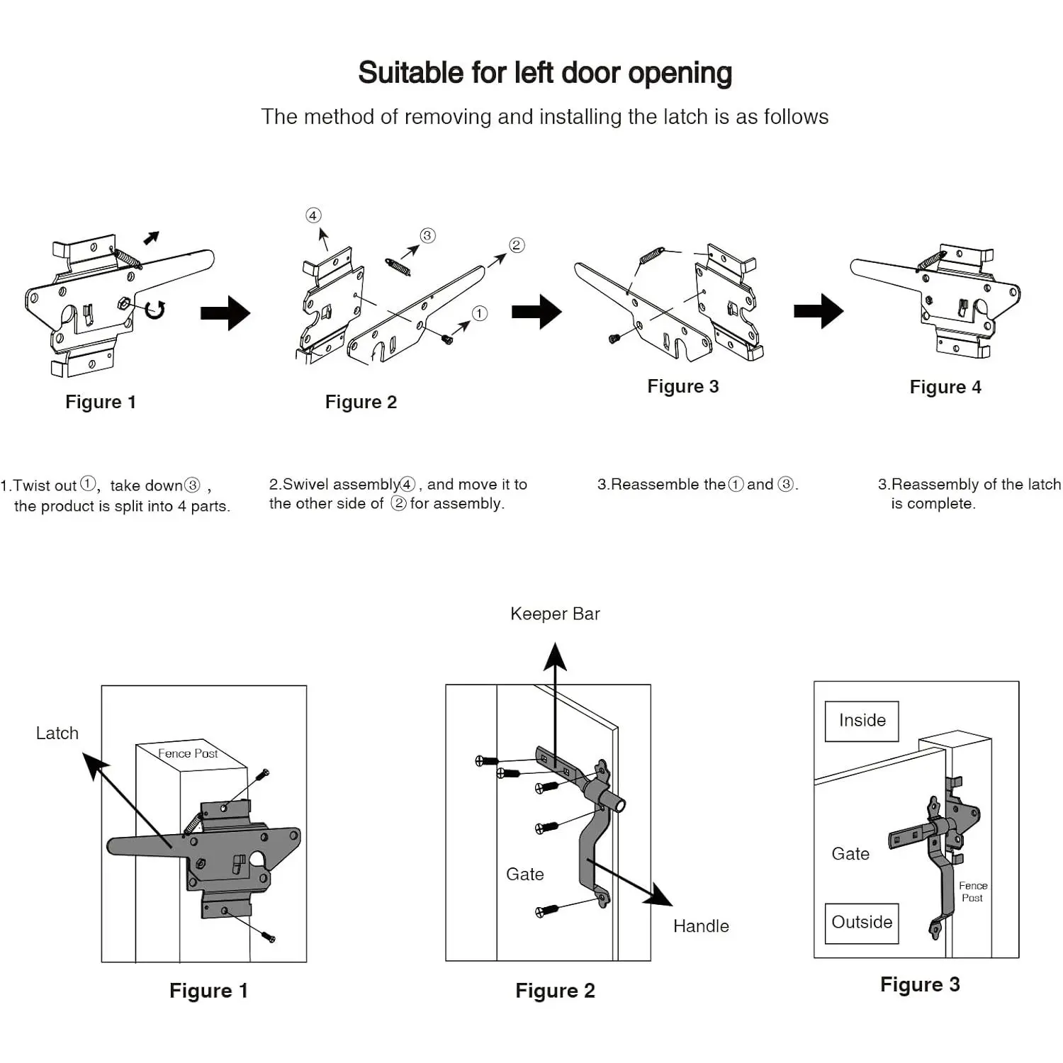 Note:Installation of the latch and handle applies to the right door, for the left door you need to remove and install the latch again, the installation steps refer to the product details page