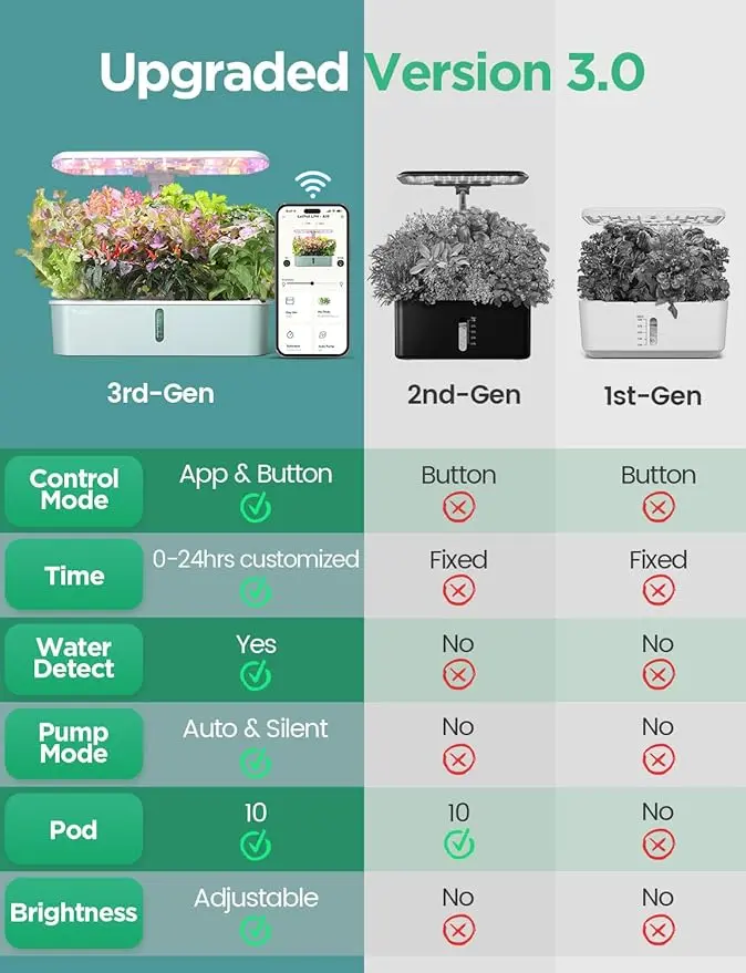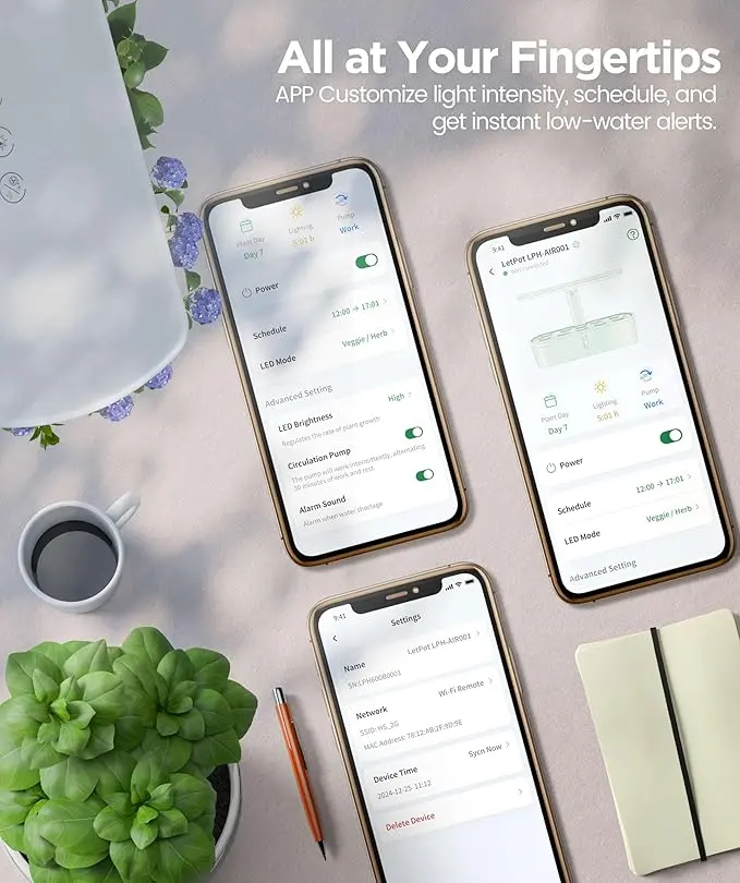 ·Intelligent Technology for Effortless Maintenance: Take charge of your indoor garden with our user-friendly LetPot App. From precise lighting adjustments spanning 24 hours to customizable light modes tailored to distinct growth phases unlike rigid time systems, you can effortlessly customize brightness to suit your needs and save on expenses! Our app becomes your green ally, with advanced features like water level alerts and silent mode ensuring your plants thrive.
