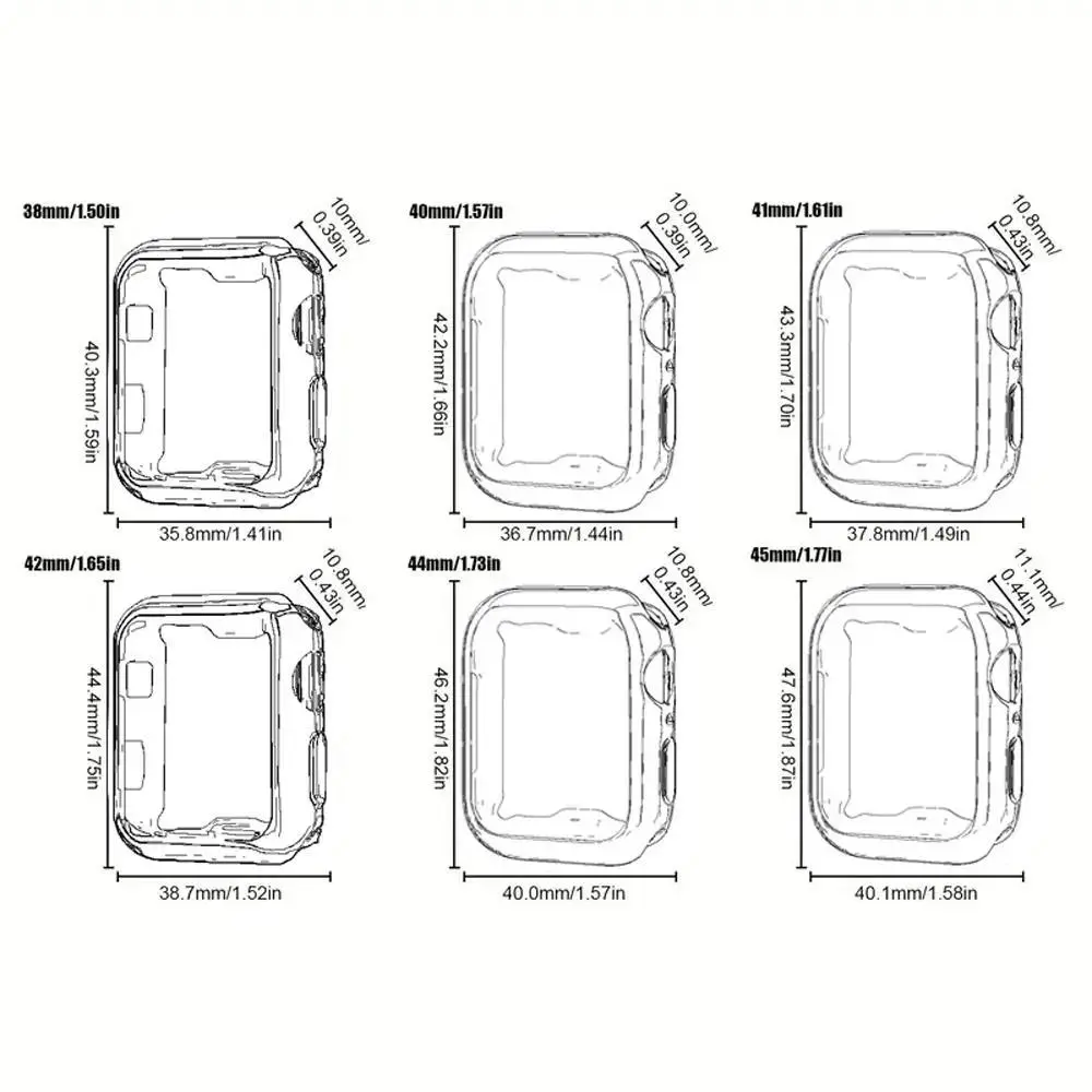 【Full Compatibility】: Supports all Apple Watch sizes from 38mm to 49mm, compatible with iWatch Series Ultra/SE/9/8/7/6/5/4/3/2/1, ensuring a perfect fit for every model. 【High Definition Clarity】: Crafted from high-quality TPU material, these cases provide a high-definition clarity that retains the original screen brightness and viewing experience. 【Anti-drop Protection】: Designed to offer comprehensive protection, these cases shield your smartwatch from drops, bumps, and daily wear while maintaining a lightweight profile. 【Precise Cutouts】: Each case is engineered with meticulous attention to detail, ensuring full access to all buttons and sensors without hindering functionality. 【Cycling Ready】: Ideal for cyclists, this case's durable TPU construction offers added protection against shocks and falls, making it a reliable accessory for outdoor sports.