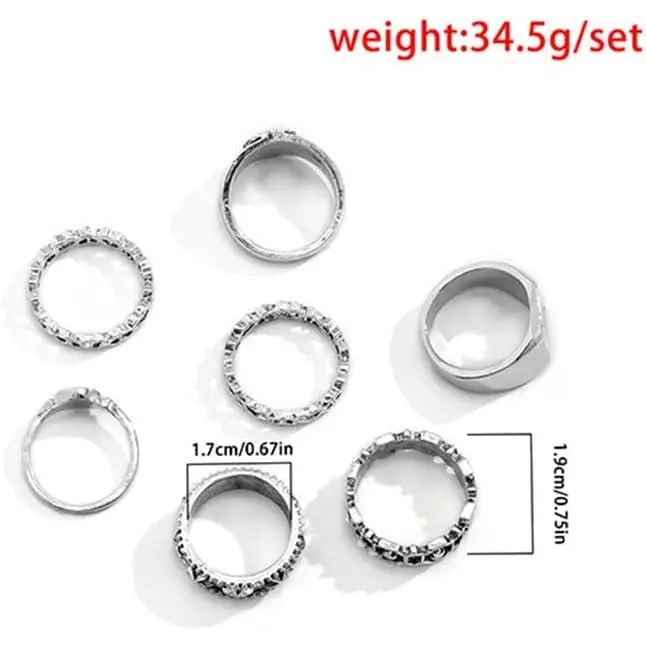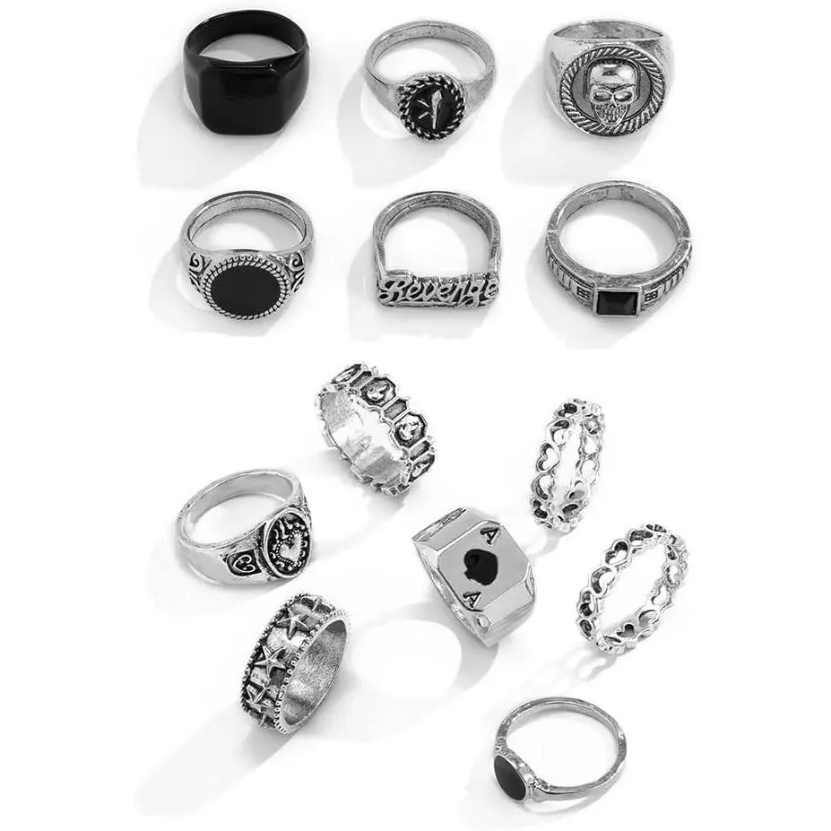 Vintage Gold Silver Punk Rings for Men Women,Cool Gothic Ring Set,Chunky Stackable Joint Knuckle Rings,Retro Skull Ace Malachite Rings