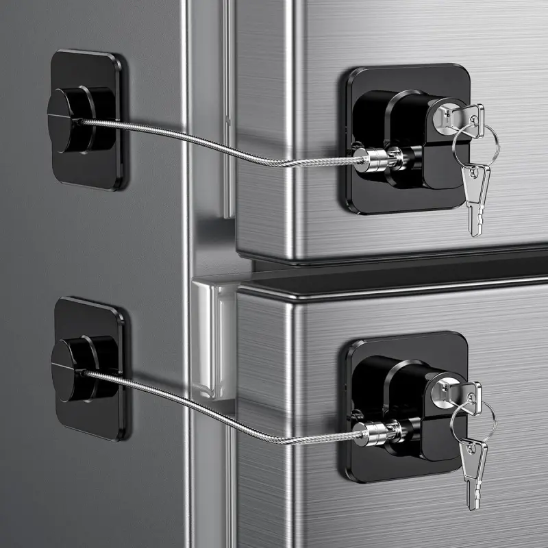 Upgraded Refrigerator Lock, 2 Pack Fridge Locks Freezer Lock with Keys, Secure Home Child Safety Locks, Adhesive Window Restrictor Lock,