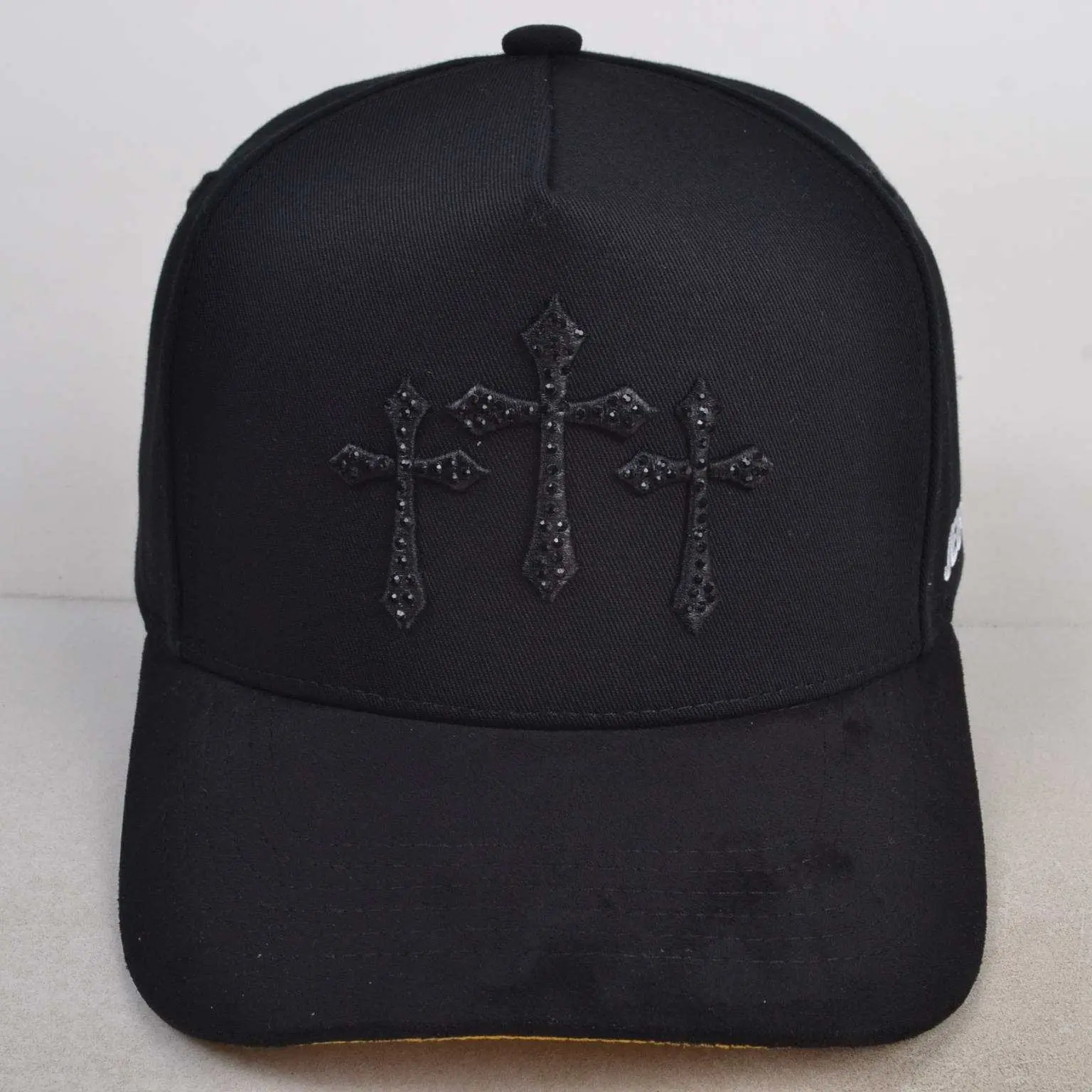 ·This cap features a 3D Gothic cross embroidery with black crystals. The design is exclusive and eye-catching. Perfect for those who appreciate unique fashion statements.