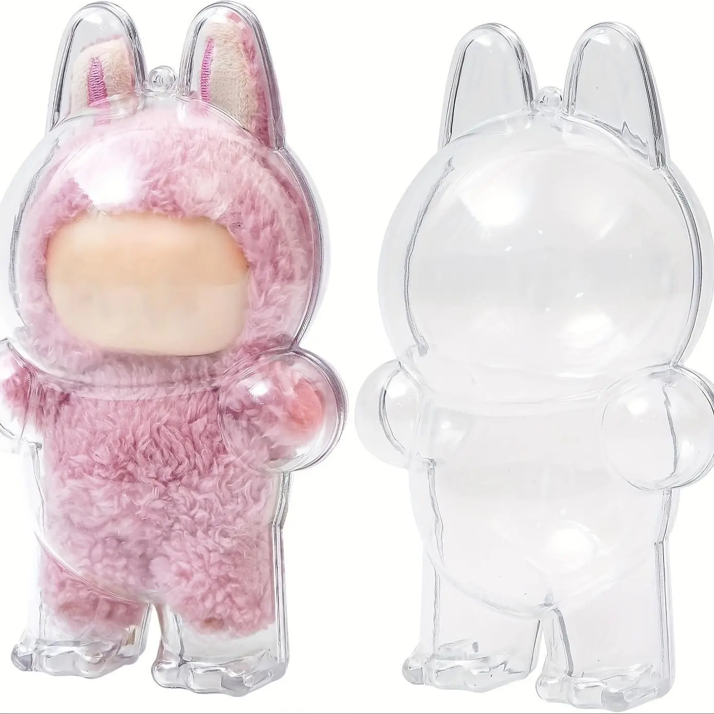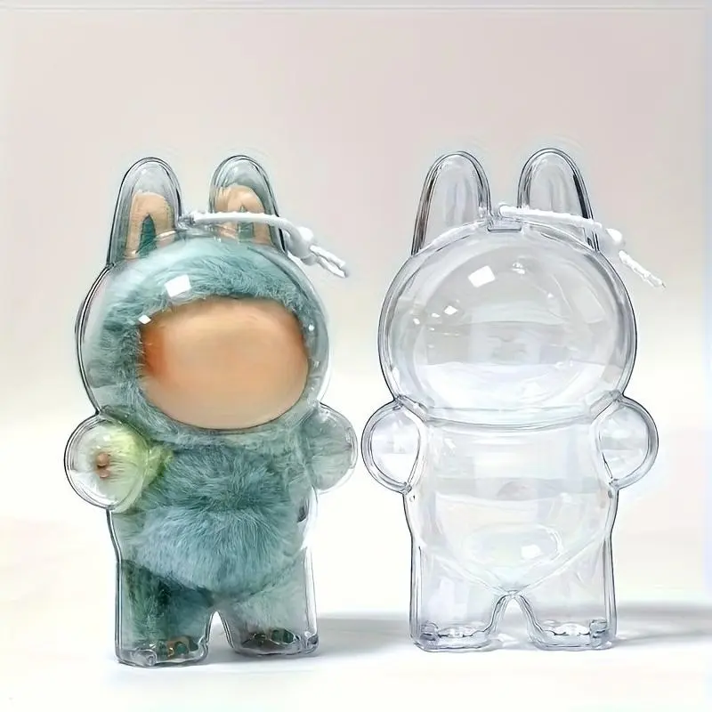 Protective Case for Labubu, Crystal-Clear Hard Display Box with Keychain, Dustproof Cover, Clear Display Case, Doll Not Included, Standing