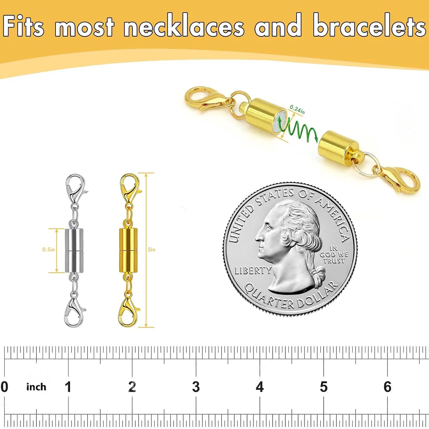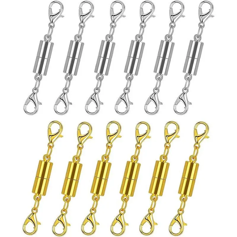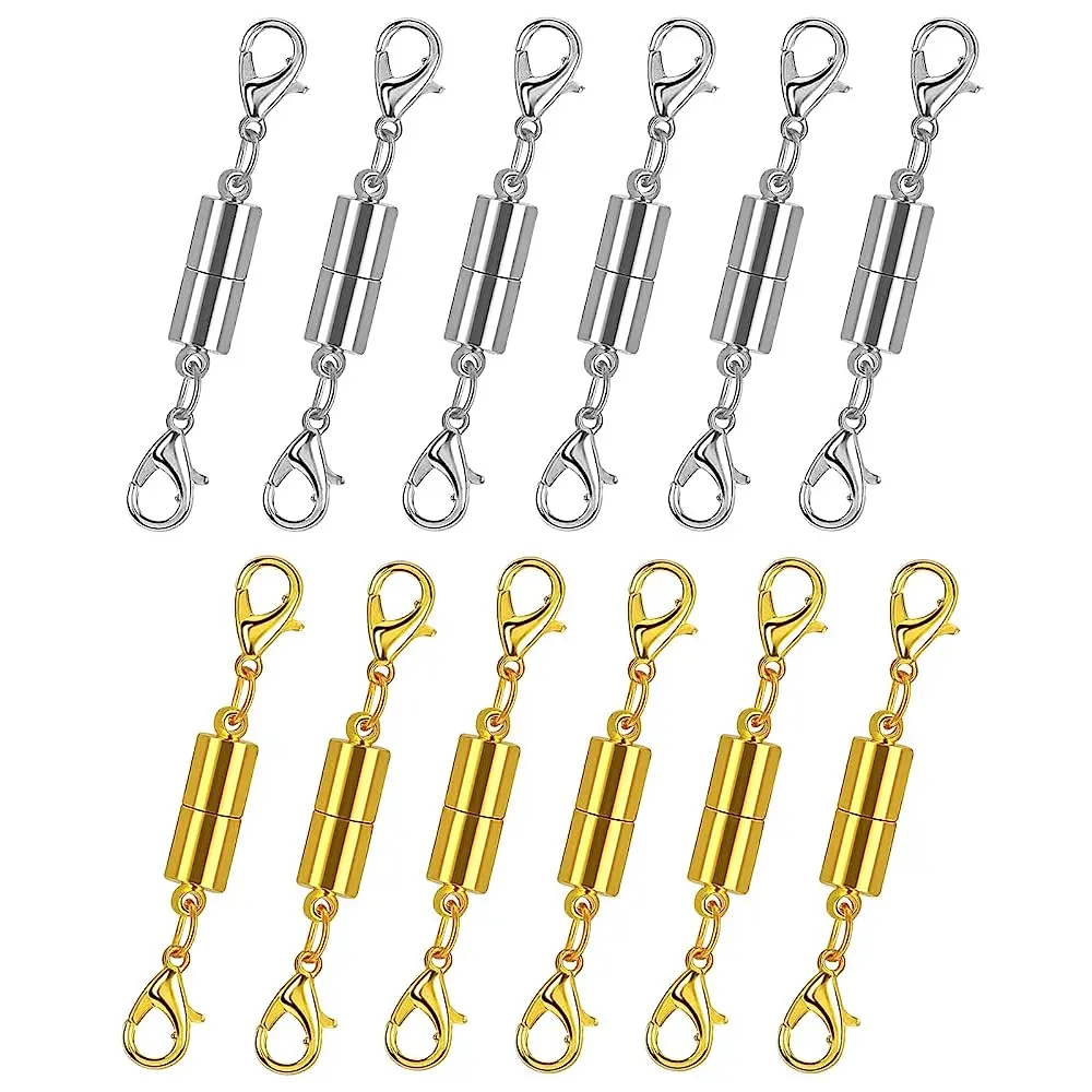 12 Pack Magnetic Necklace Clasps and Closures Necklace Jewelry Extender with Strong Magnet Magnetic Gold and Silver Plating Gift Stainless Steel Charm