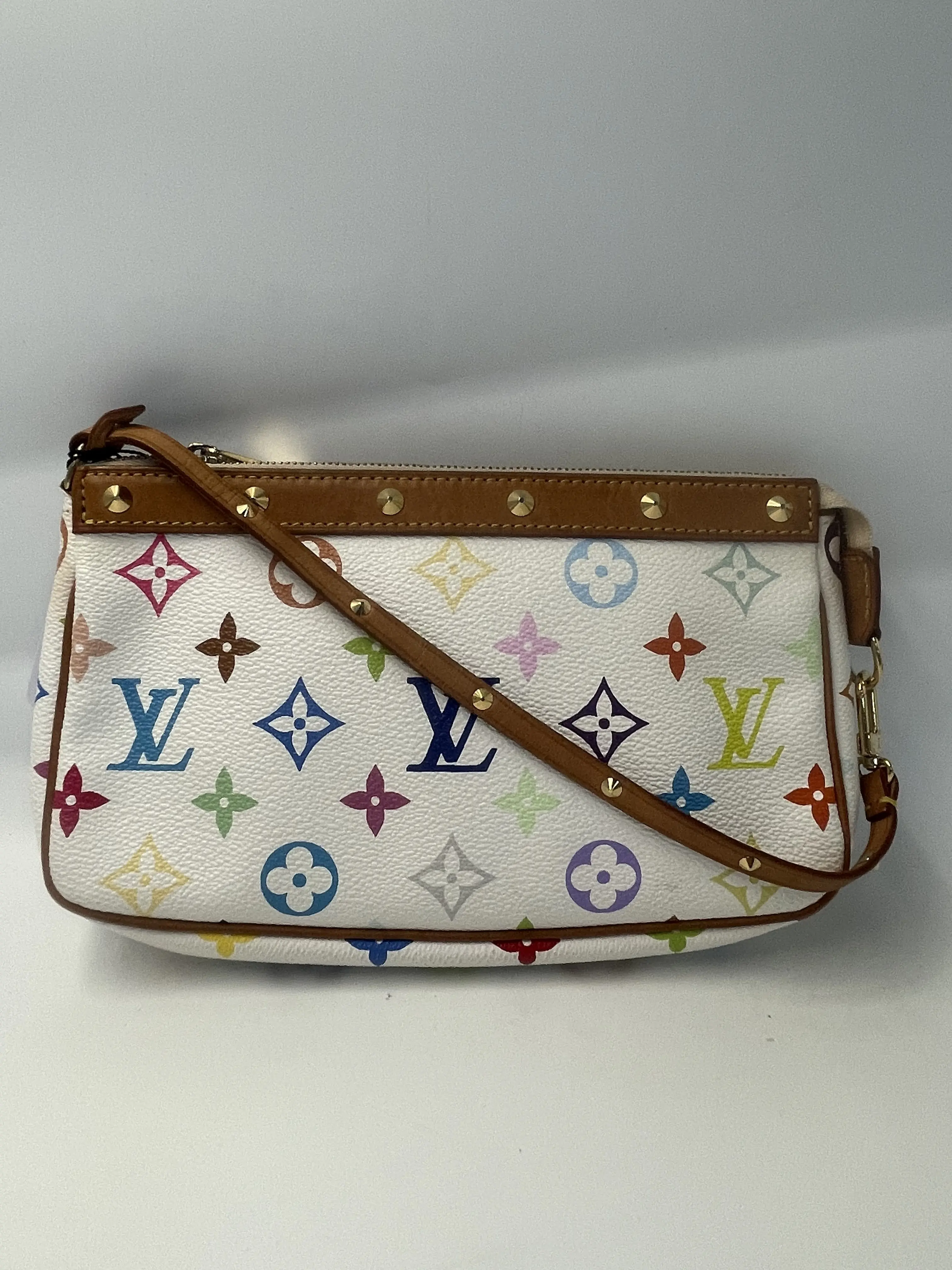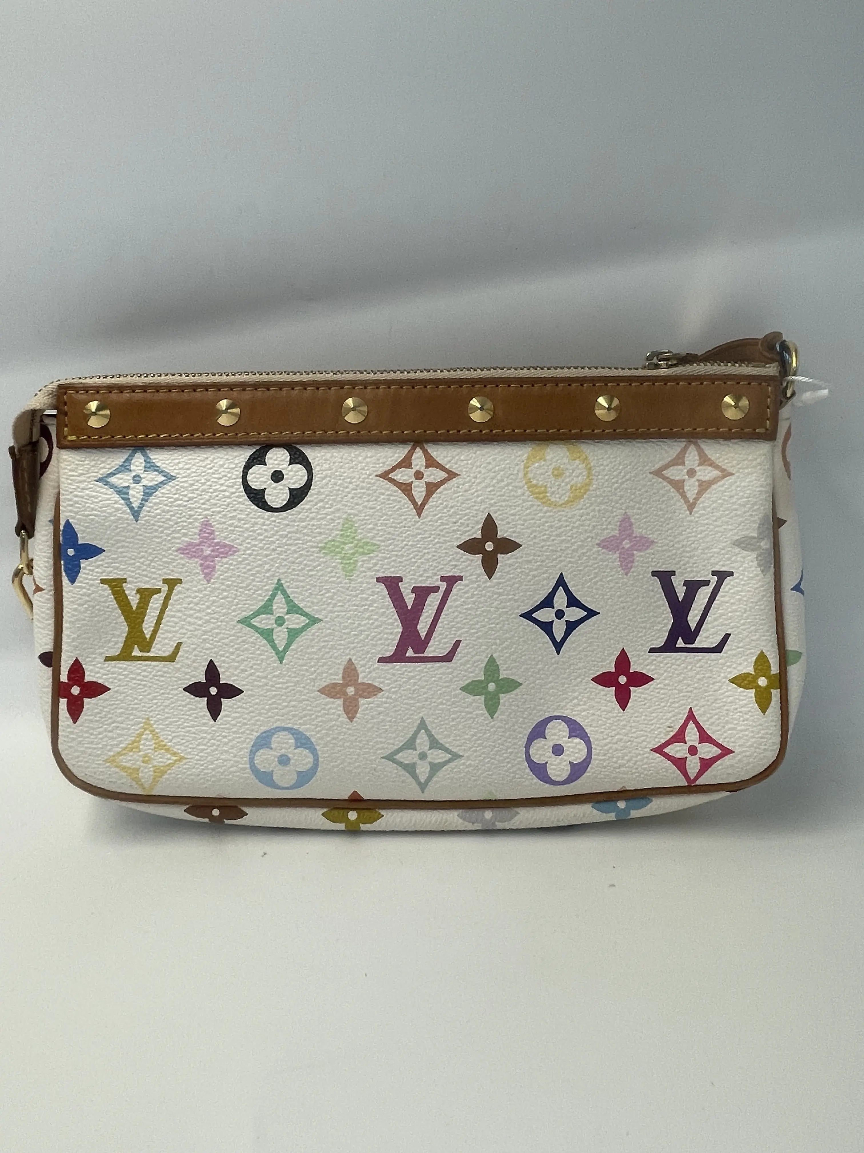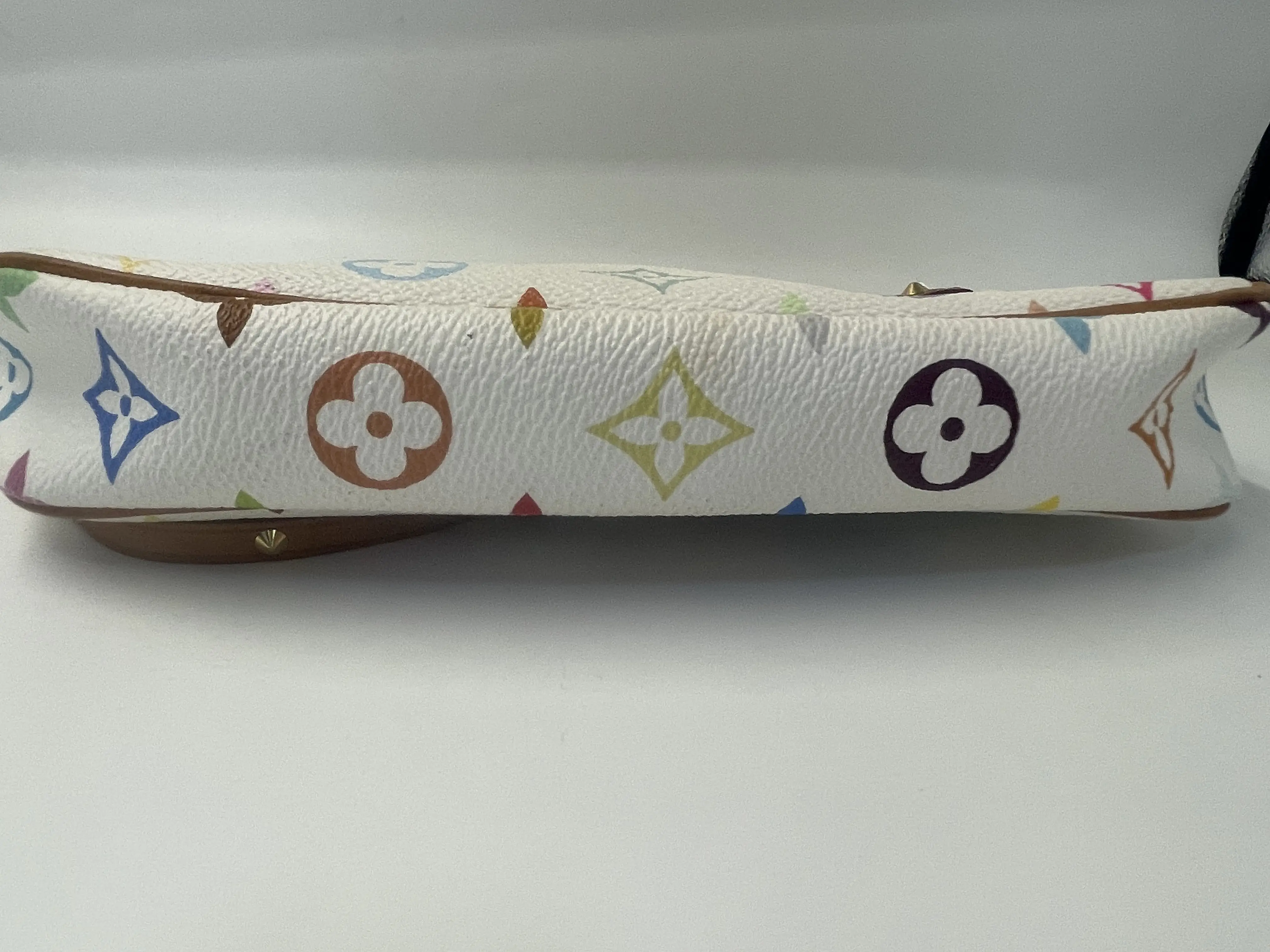 This is an iconic, discontinued Louis Vuitton Pochette Accessoires handbag from the legendary Monogram Multicolore collection, a landmark 2000s collaboration between LV and Japanese contemporary artist Takashi Murakami. A highly sought-after vintage (pre-owned) piece, it blends Murakami's playful, pop-art vision with Louis Vuitton's timeless craftsmanship, making it a staple for luxury collectors and fashion enthusiasts worldwide.