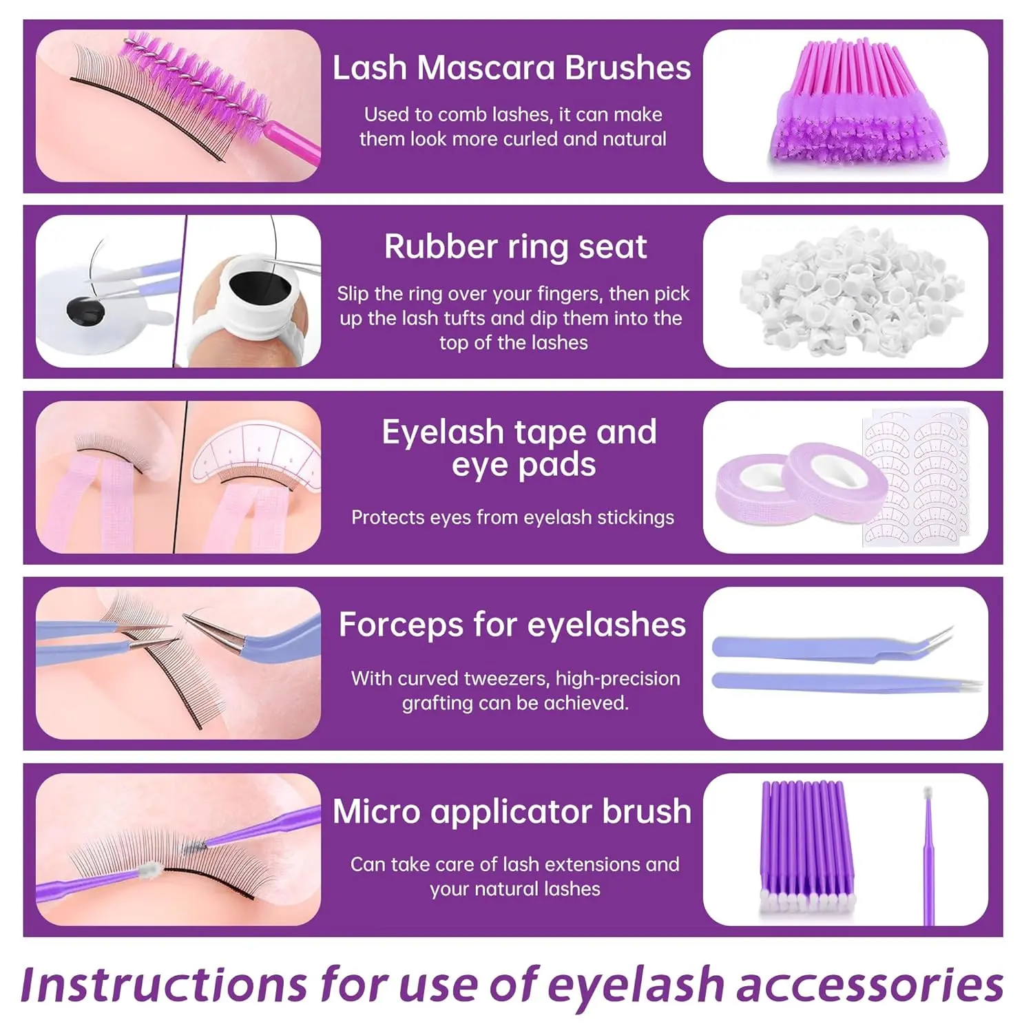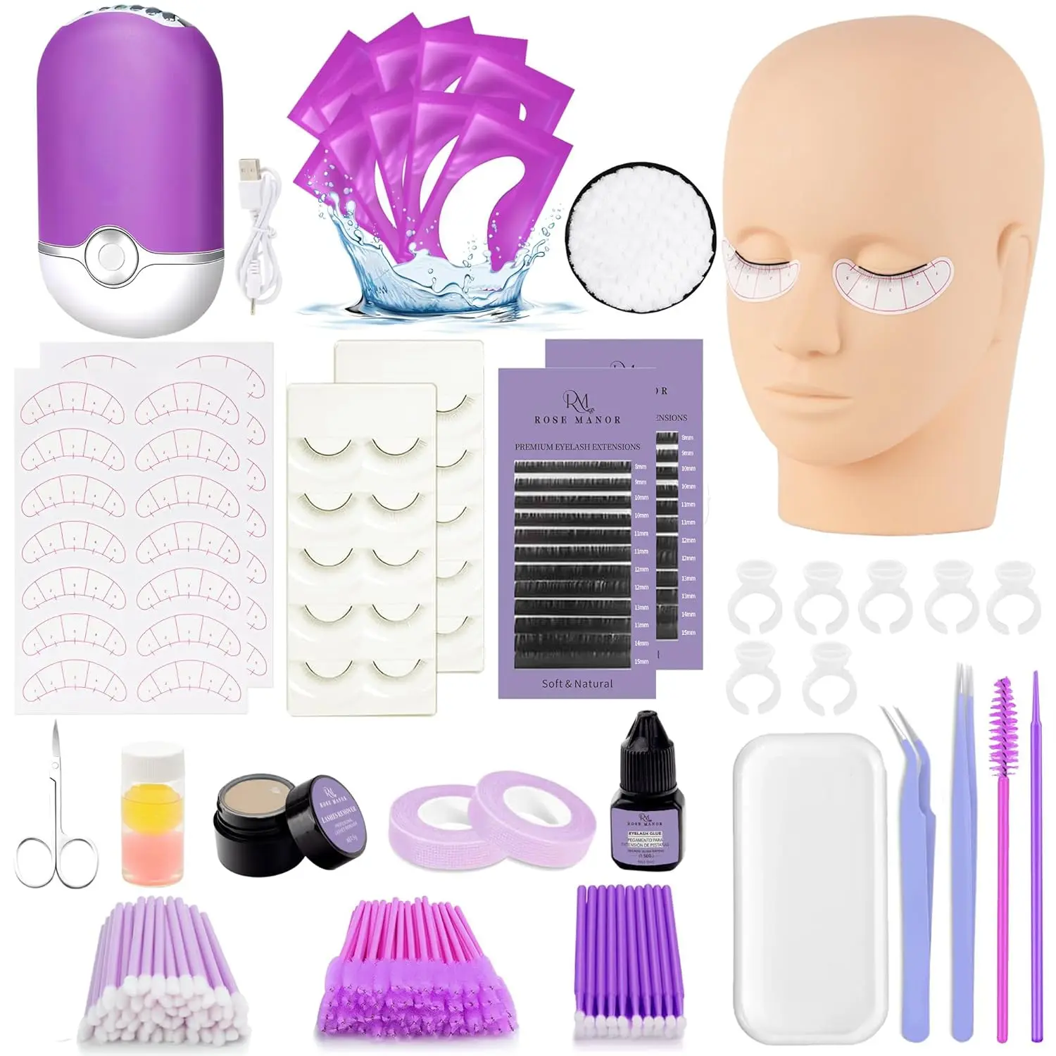 Lash Eyelash Extension Kit, Lash Kit for Eyelash Extension Beginners, with Mannequin Head, Individual Lash Glue, Eyelash Remover, Fan, Lash Extension Supplies Tools for Practice Training