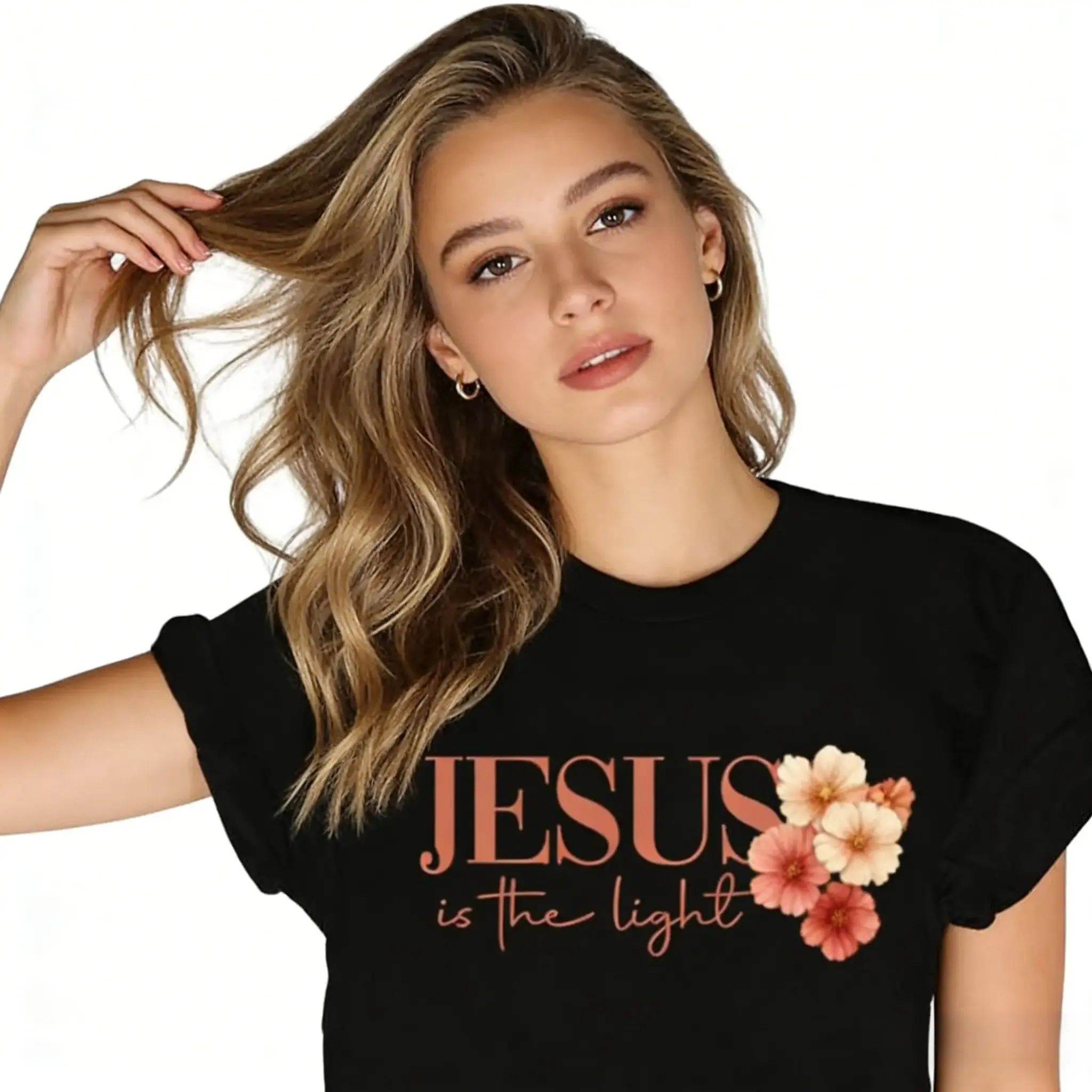 Featuring a beautifully detailed floral cross design✝️🌸, this tee blends faith and elegance into a soft, uplifting statement that feels both meaningful and stylish✨.The delicate floral elements add a gentle, feminine touch while highlighting a powerful message of belief and devotion💖🙏. Perfect for church, gatherings, or everyday inspiration, it brings a peaceful, graceful vibe to your look while allowing you to express your faith with confidence and warmth🌿💫.