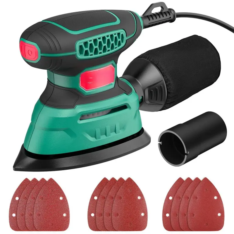 140W Detail Sander, 13000OPM, 1.2A Palm Sander Tool with 12 Sandpapers, with Efficient Dust Collection System, Compact Hand Sander for Woodworking Portable Orbital Polisher Random Orbital Polisher Hardware Rubber