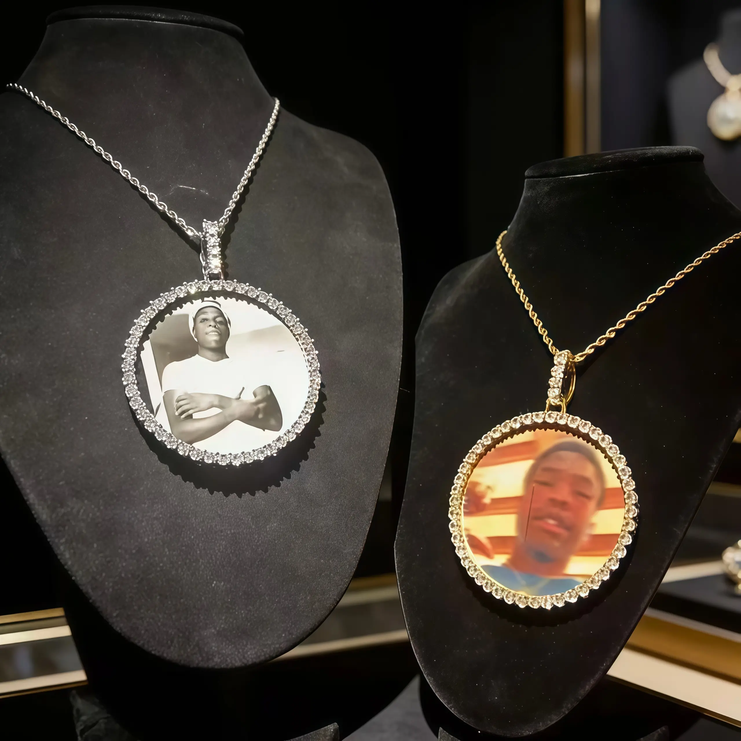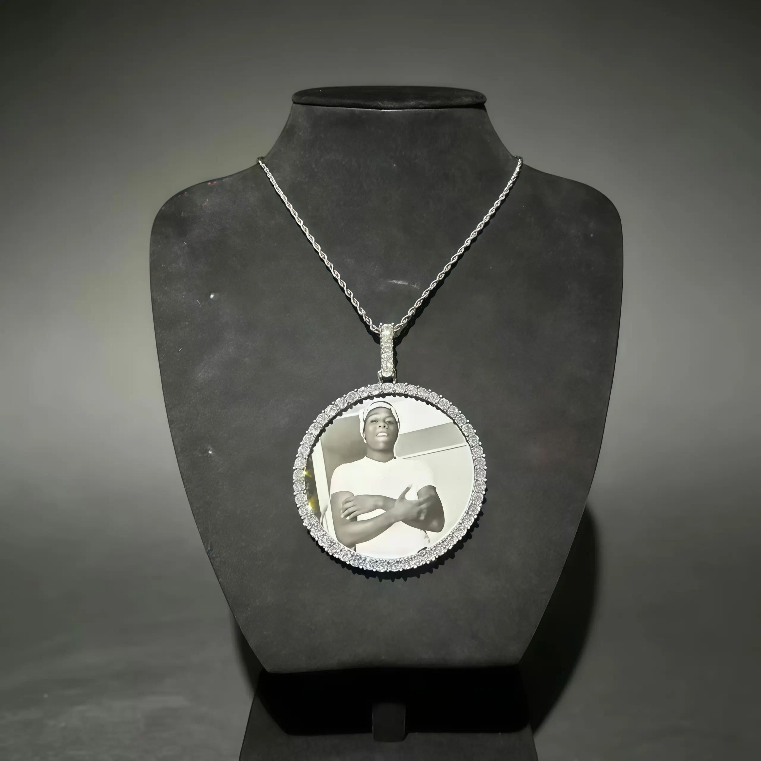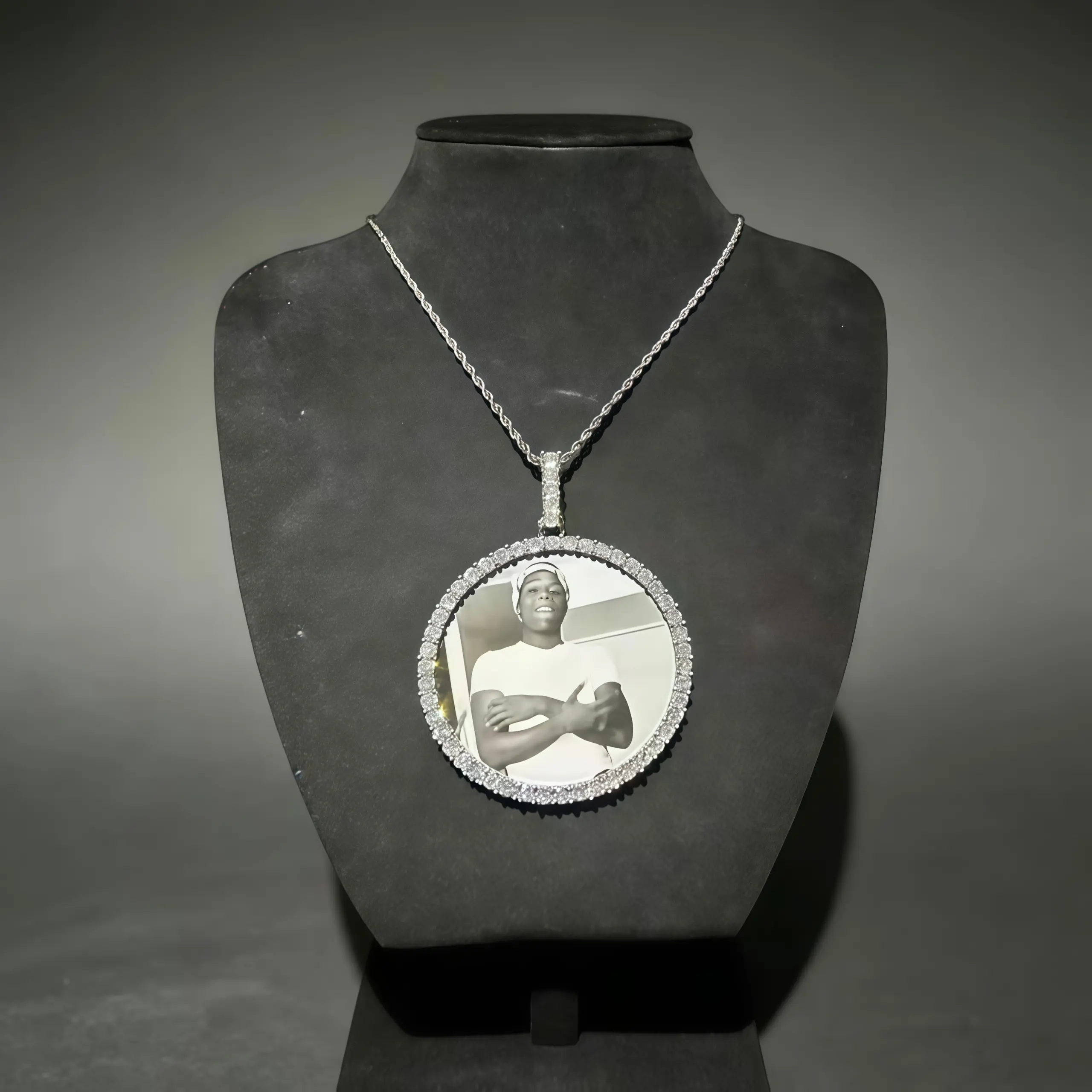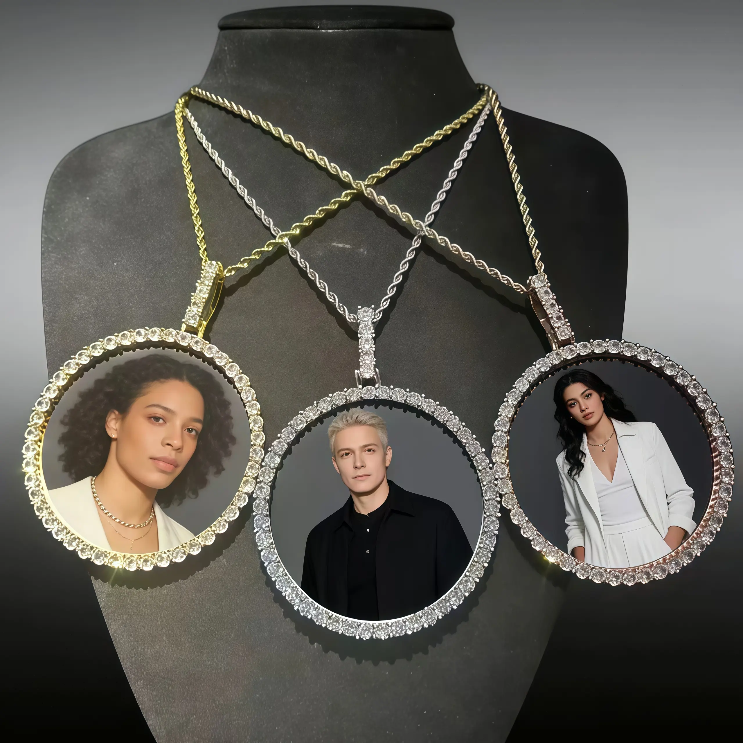 ·Custom Photo Necklace For Men Personalized Medallion Memory Picture Pendant Solid Back Zircon Hip Hop Jewelry Free Engra|Customizable Photo Pendant:Personalize your style with a custom photo engraved on a sleek medallion pendant.