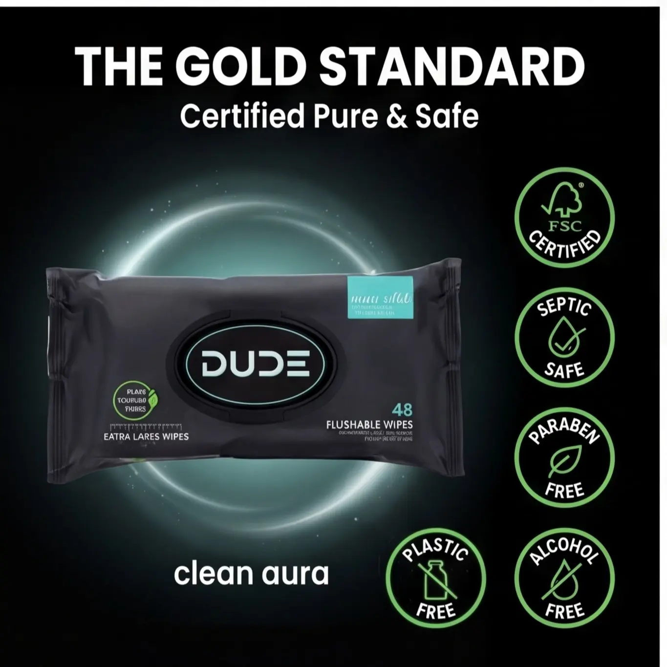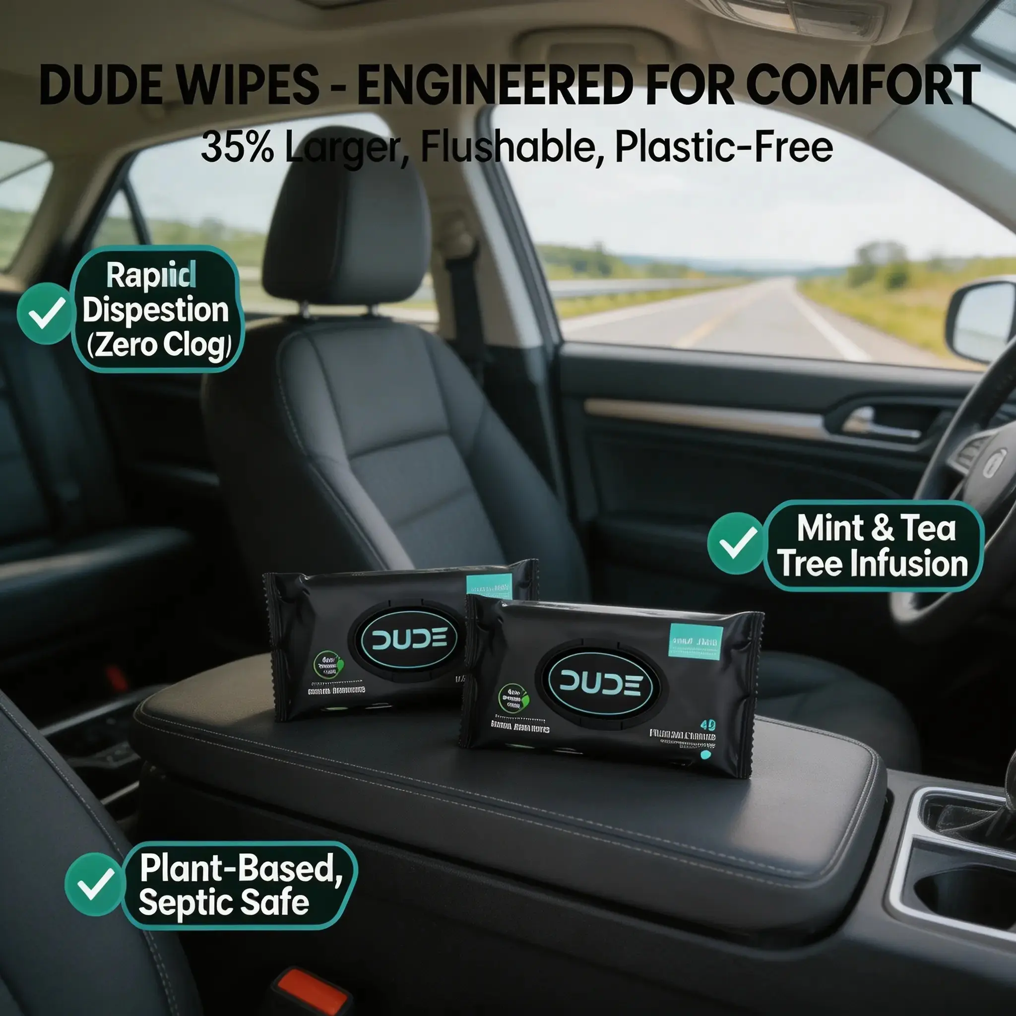 48 Pcs Biodegradable Flushable Wet Wipes, Plant-Based No Plastic, Mint Tea Tree Oil Antibacterial, Large Size, Universal Toilet Use