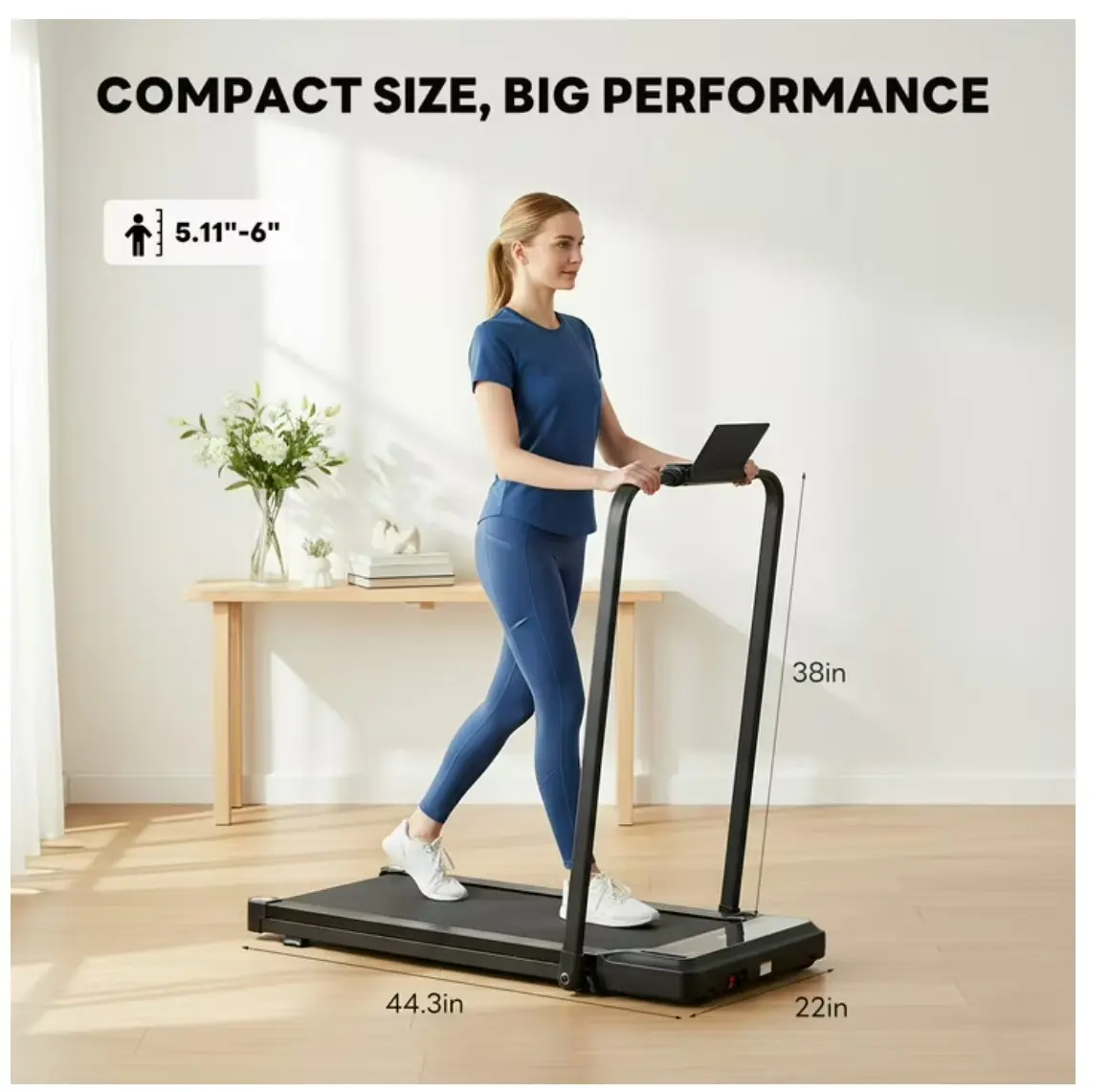 ·Intuitive Display & Design: Monitor your progress on the clear, multi-functional display. This Walking Pad Treadmill is designed to be fully foldable, ensuring it occupies minimal space, making it perfect for apartments or small living areas when not in use
