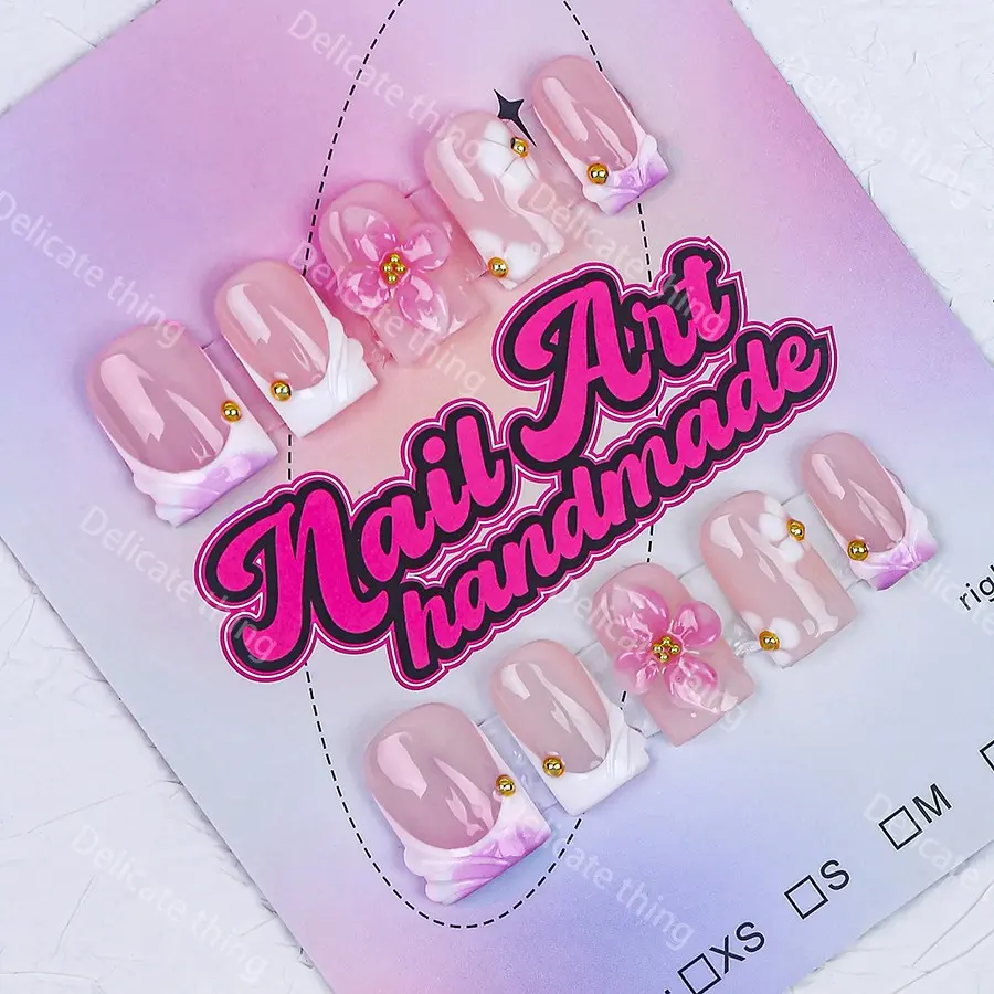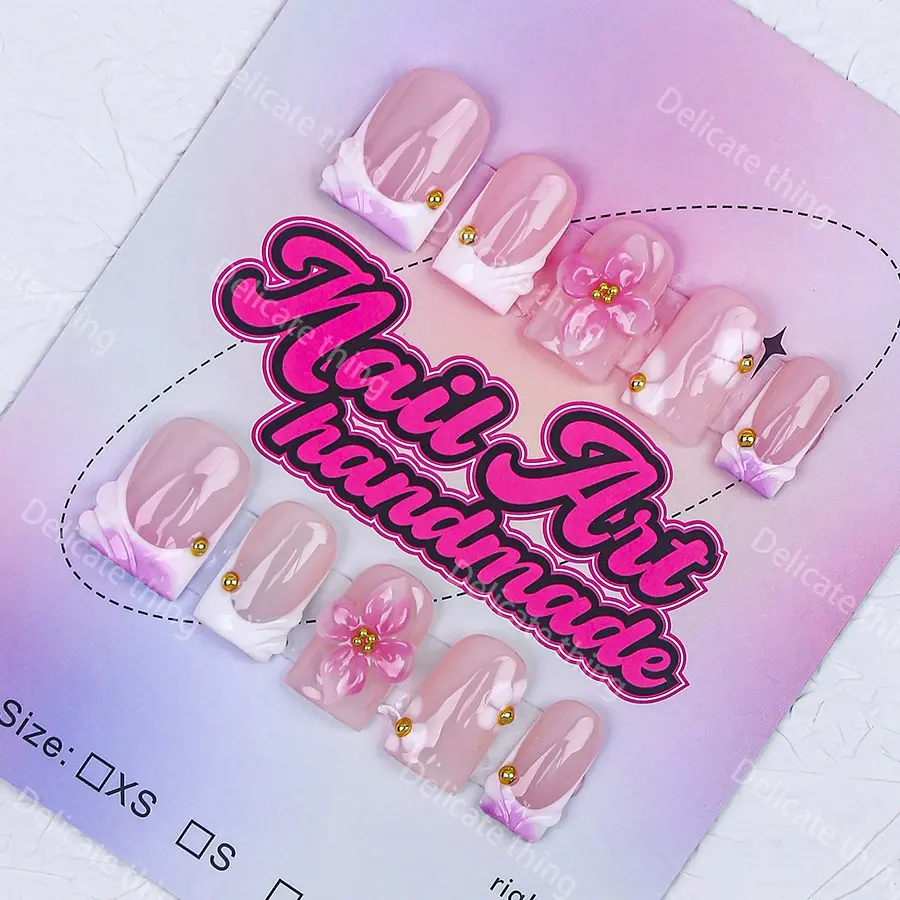 4. Delicatething Y2K Style Nail Set, Handmade Square Duckbill Nails, 4 Sizes XS S M L, Perfect Gift for Girls, Includes Jelly Glue Crystal Stick