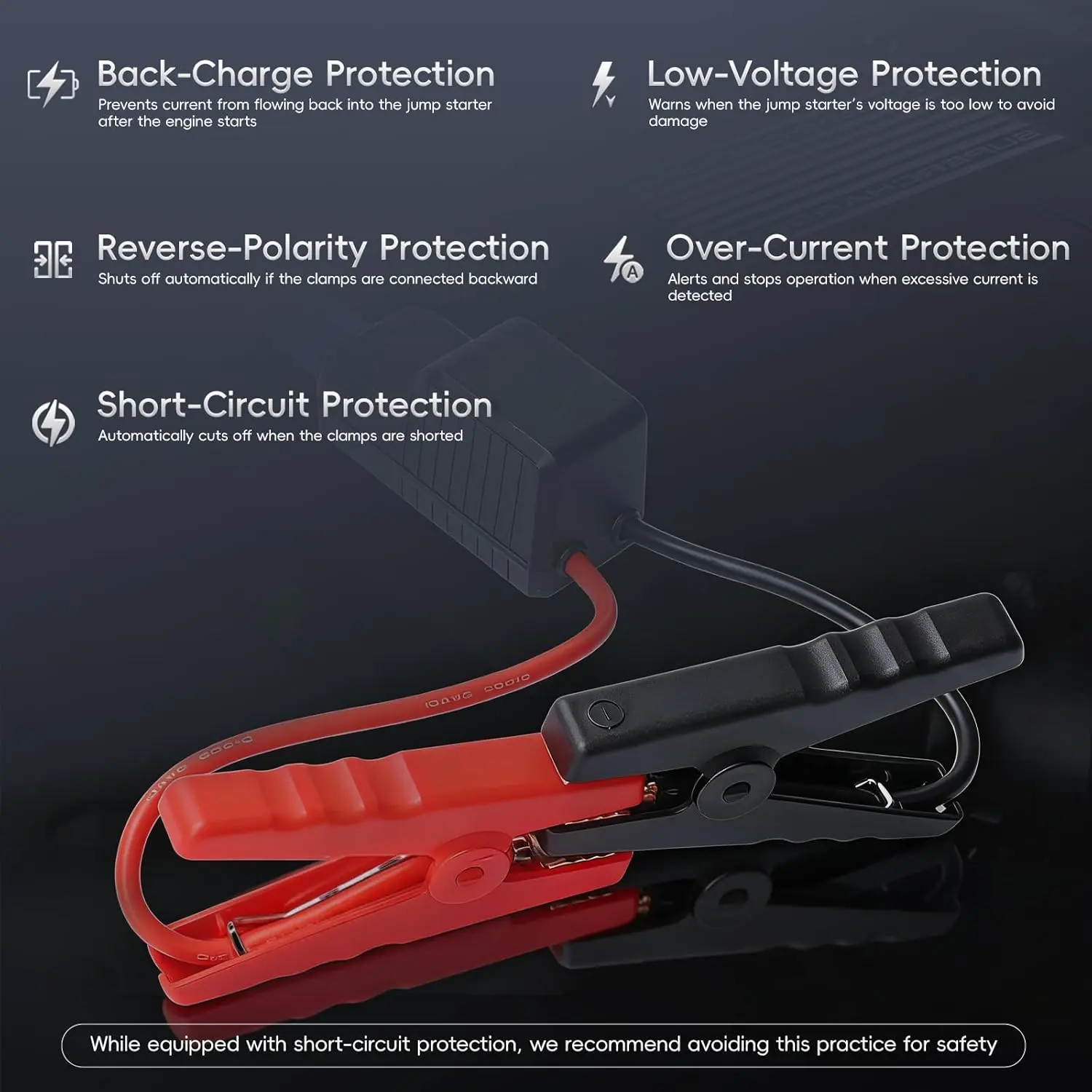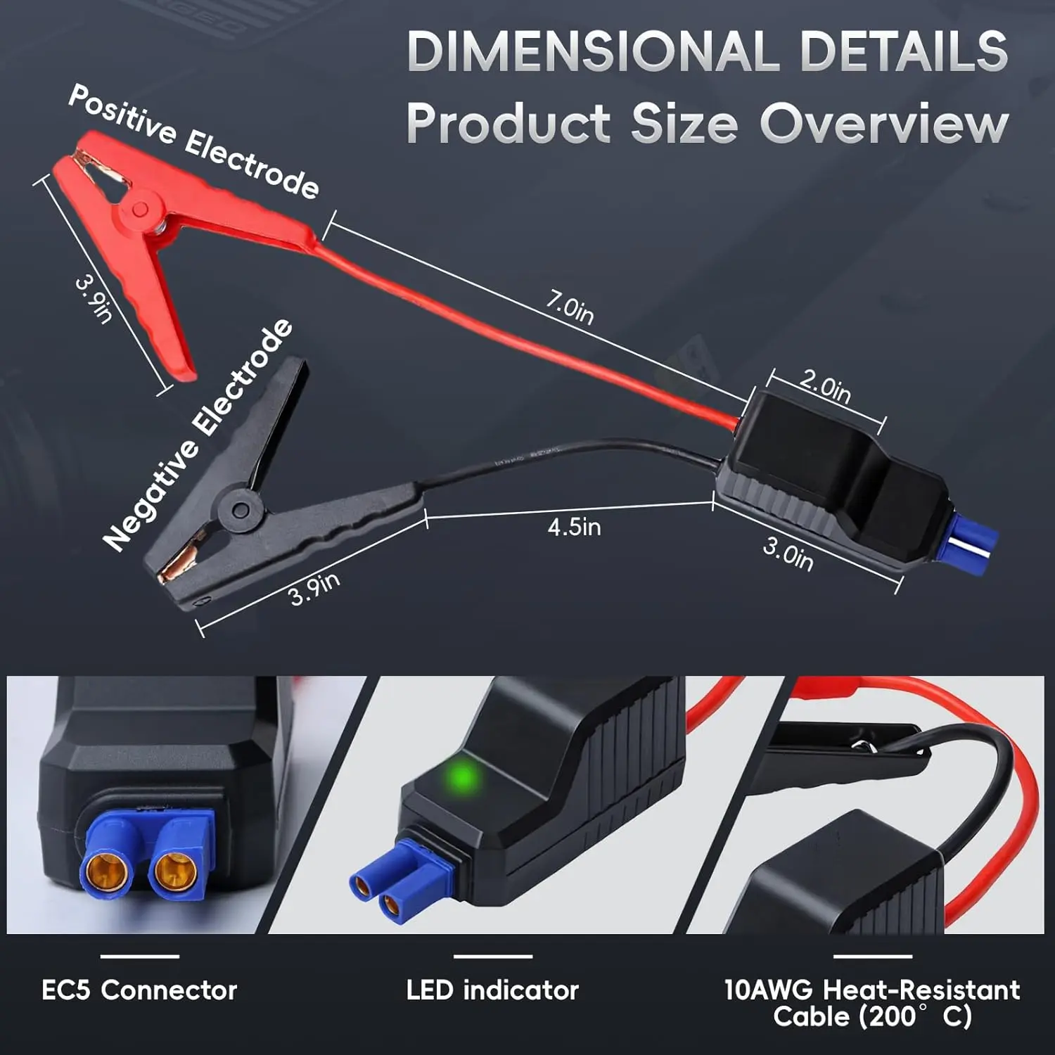 Smart Jump Starter Clamps, 10AWG EC5 Heavy Duty Replacement Alligator Clips for 12V Portable Car Battery Booster, Universal for SUV/Truck/RV (LED + Beep Alert)