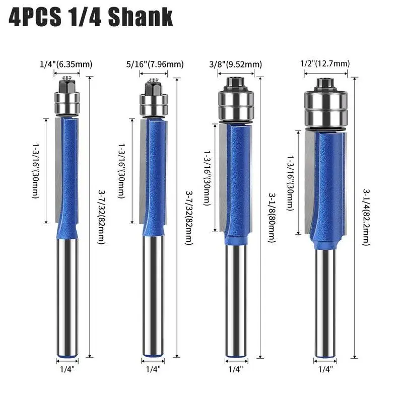 4PCS Flush Trim Router Bit Set 1/4 Inch Shank Top Bearing Flush Trim Router Bit
