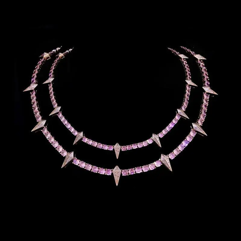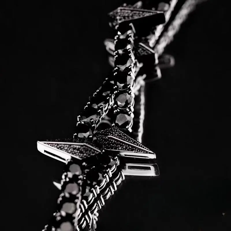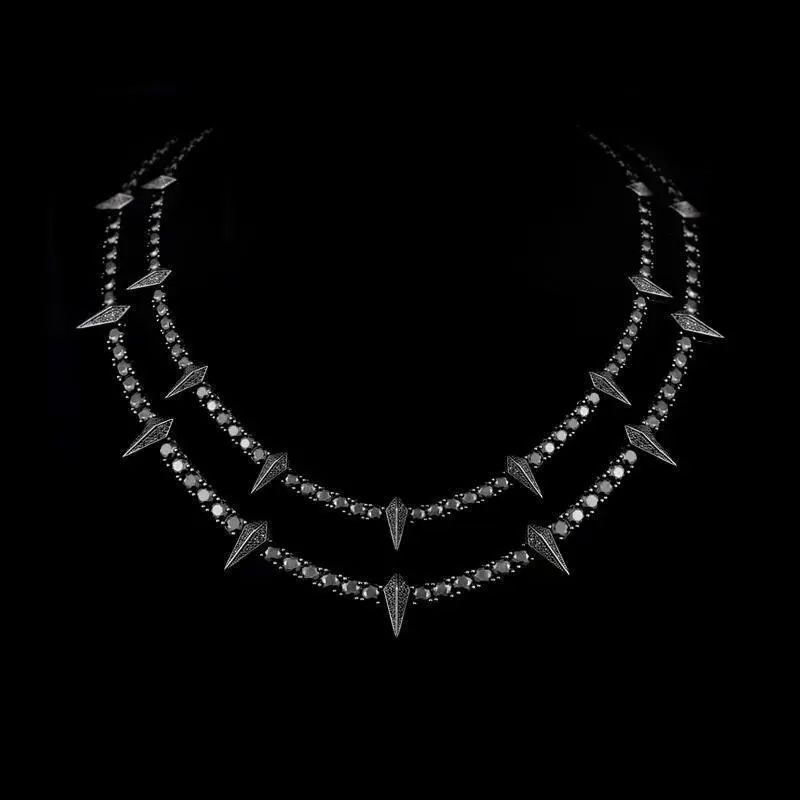 [ICE HUE]18K Gold Vacuum Plated Copper with 5A+ Sri Lanka Zircon Black SpikeNecklace Miami Italy Mexico & Micro Inspired for Women & Men Luxury Jewelry,Daily Wear,Casual Fashion,Gift Idea,,Classic,Minimalist,Simple,Sporty Style