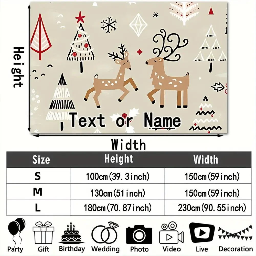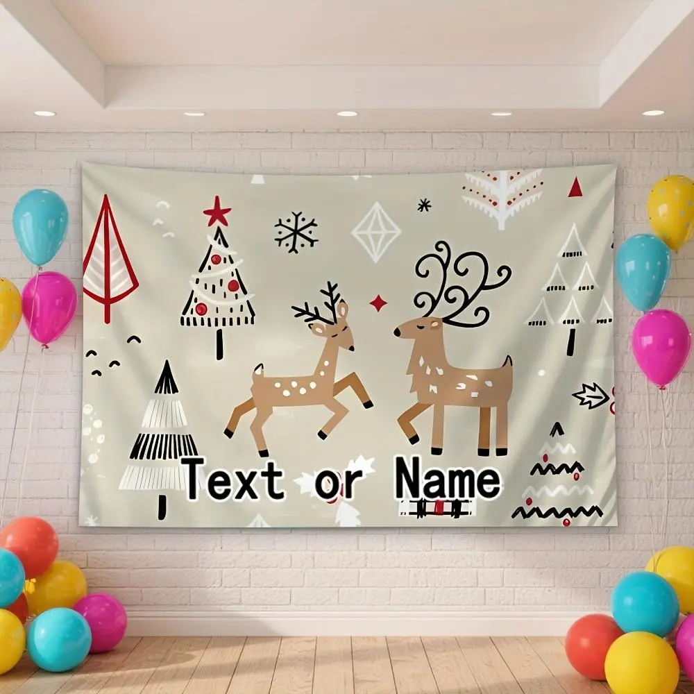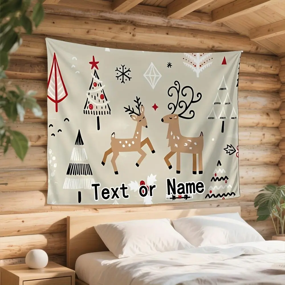 Custom 1pc Home Decor Tapestry, Christmas Reindeer Pattern with Personalized Name Background, Available in Various Sizes And Uses, Suitable for Wall Decoration, Courtyard Wall Decor, Easy to Hang, Garden, Home Decor, High-End, Mother'S Day