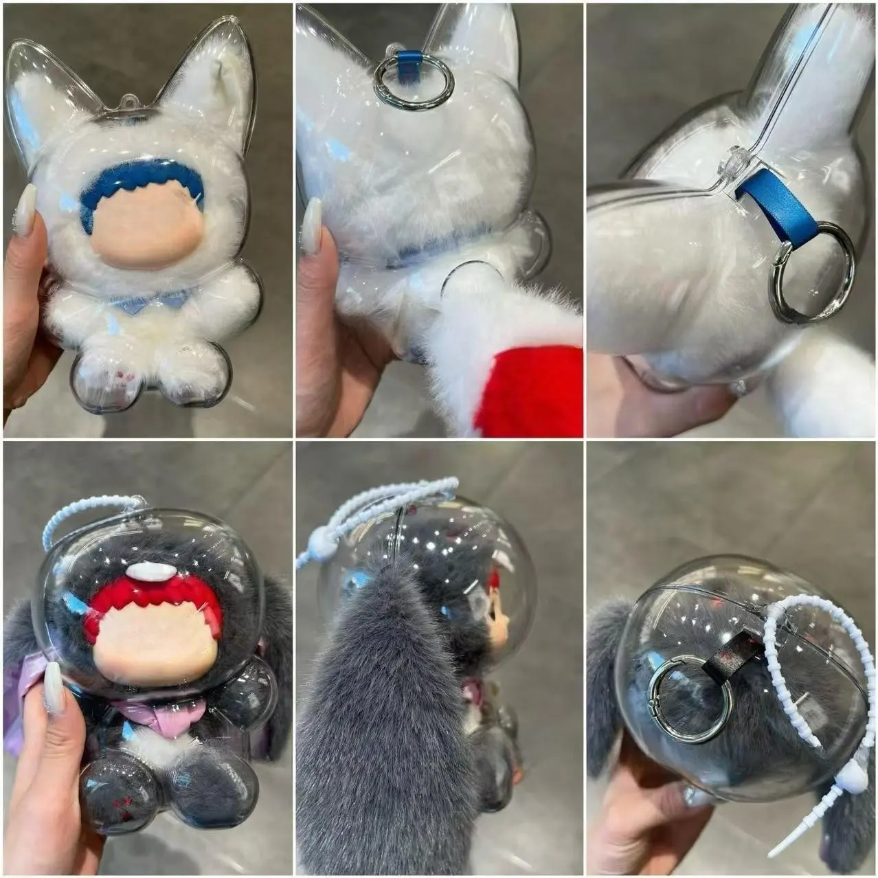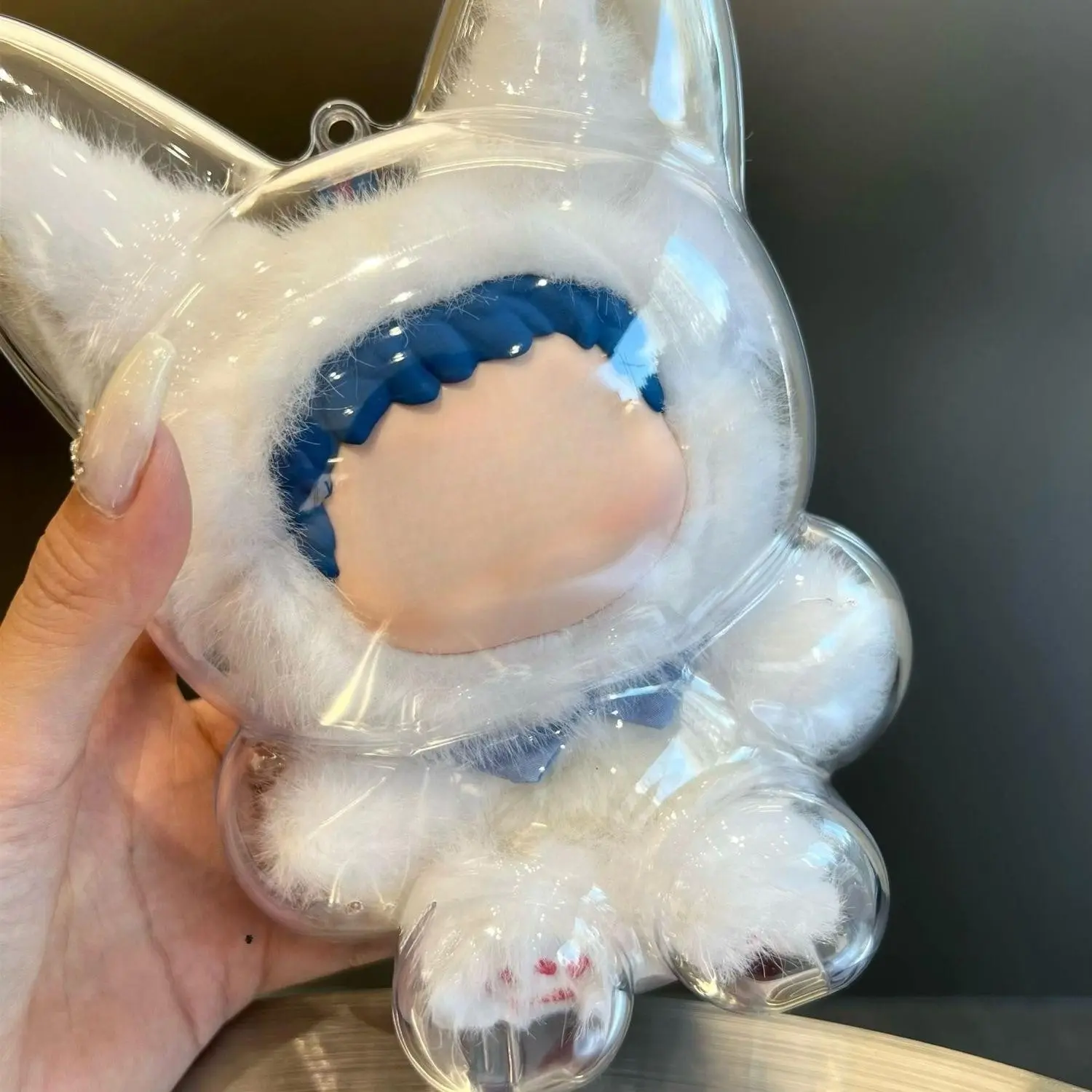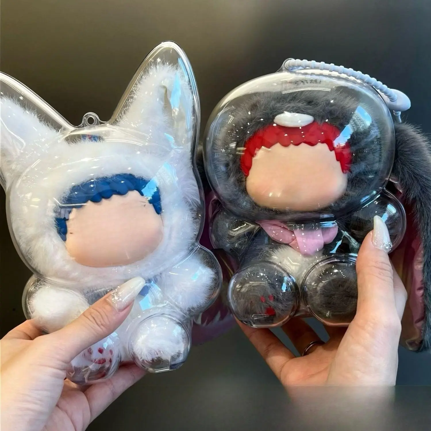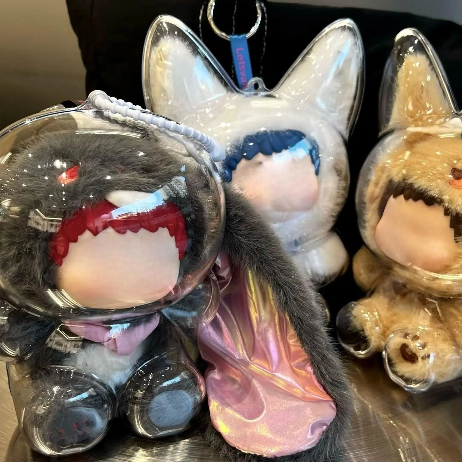 Colorful Transparent Protector Case Organizer Box for 17cm Labubu Plush Dolls Outdoor Display Bag With Keychain Doll labubu Accessories Keychain For Bags