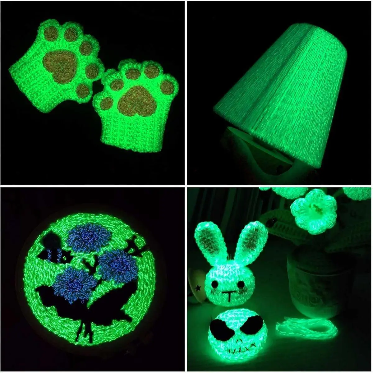 Glow yarn: Crochet yarn You need to expose the glow in the dark yarn completely to the sunlight for 15~30 minutes to fully absorb the light