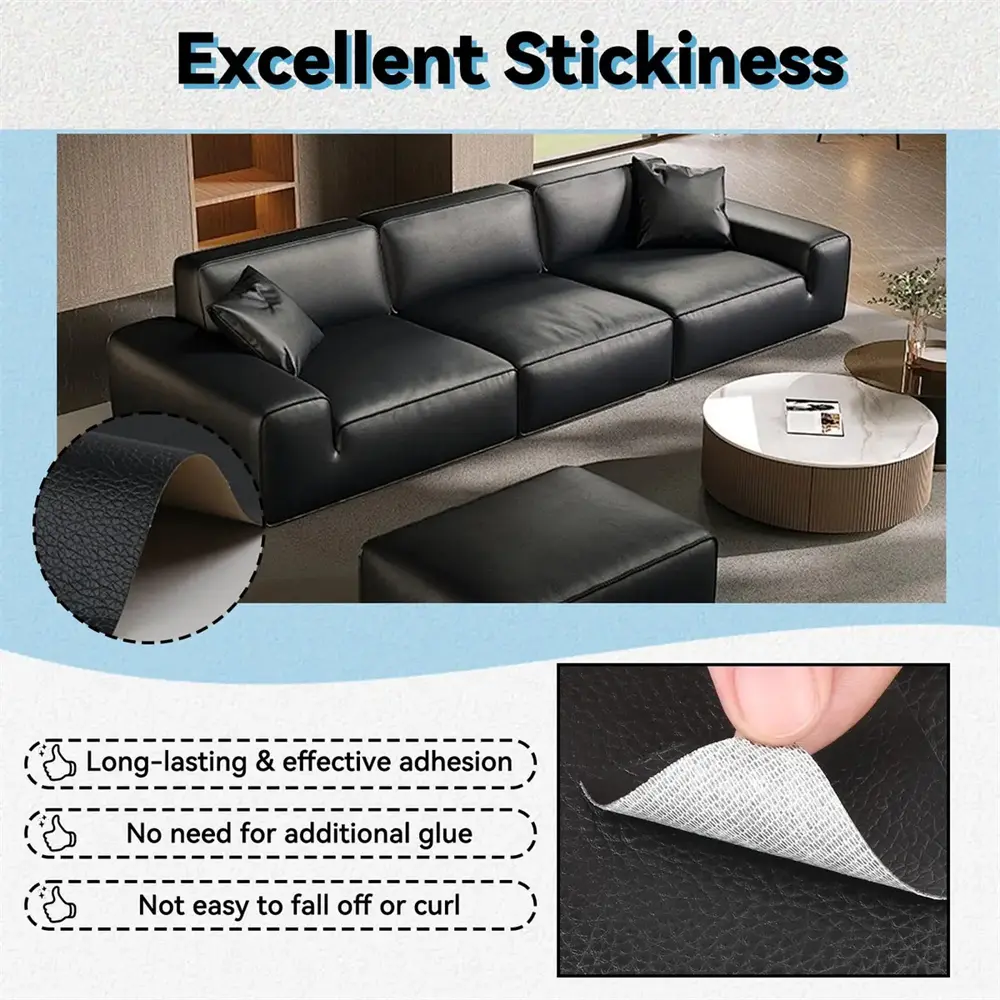 ·Large Size: 17” x 79”, ideal for repairing small tears in furniture, sofas, car seats, and chairs.