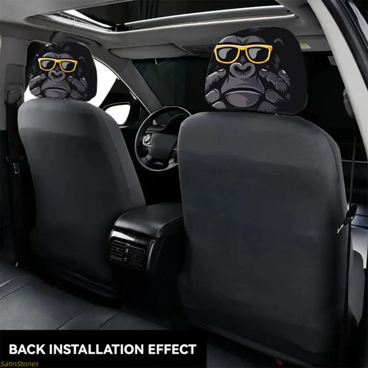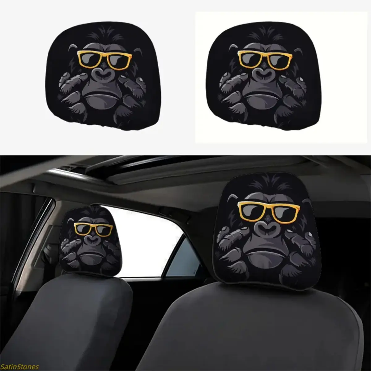 2 Pack Gorilla Headrest Covers with Stylish Eyeglasses, Gorilla and Sunglasses Design, Elastic Car Seat Protector, Truck Seat Cushion Protector, Easy to Install