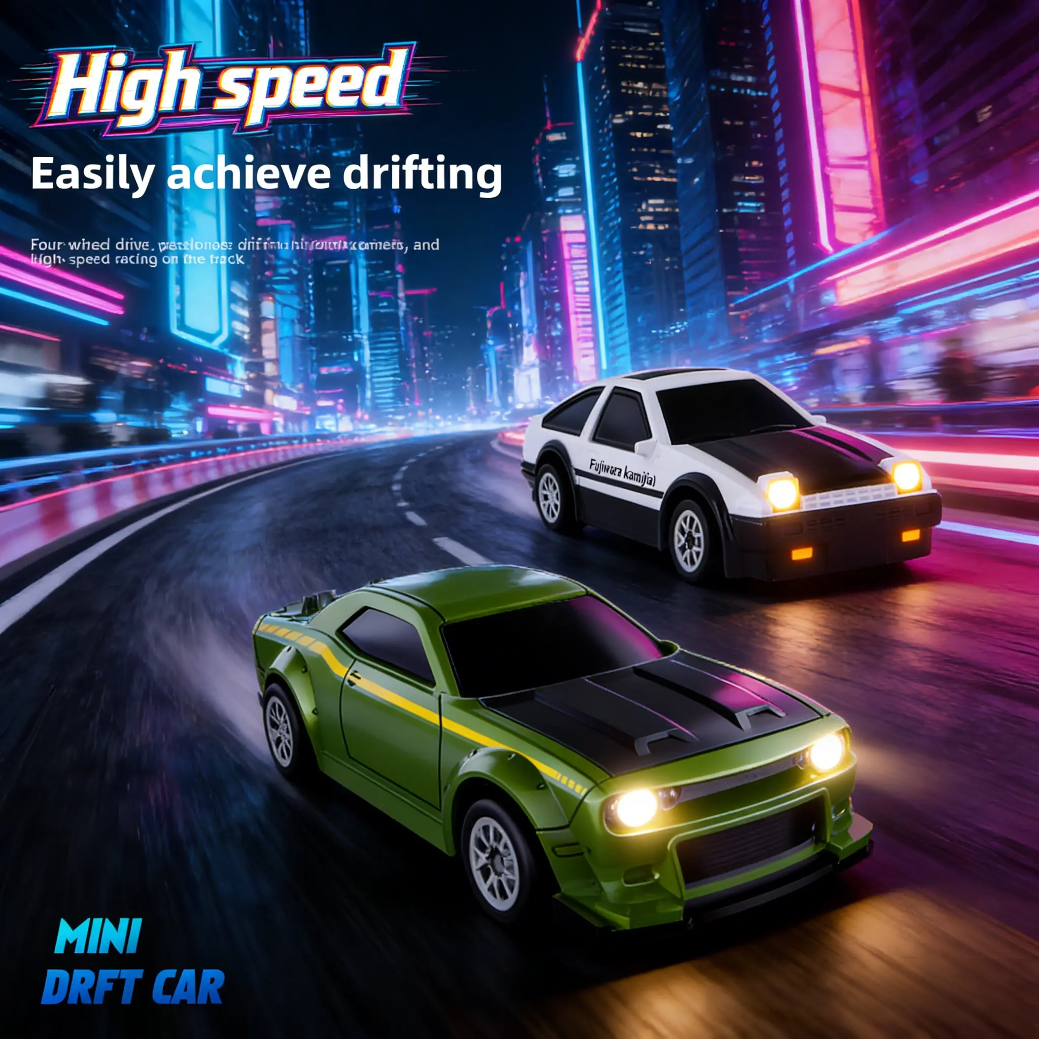This ultra-mini 1:64 scale RC drift car is designed for both play and display.