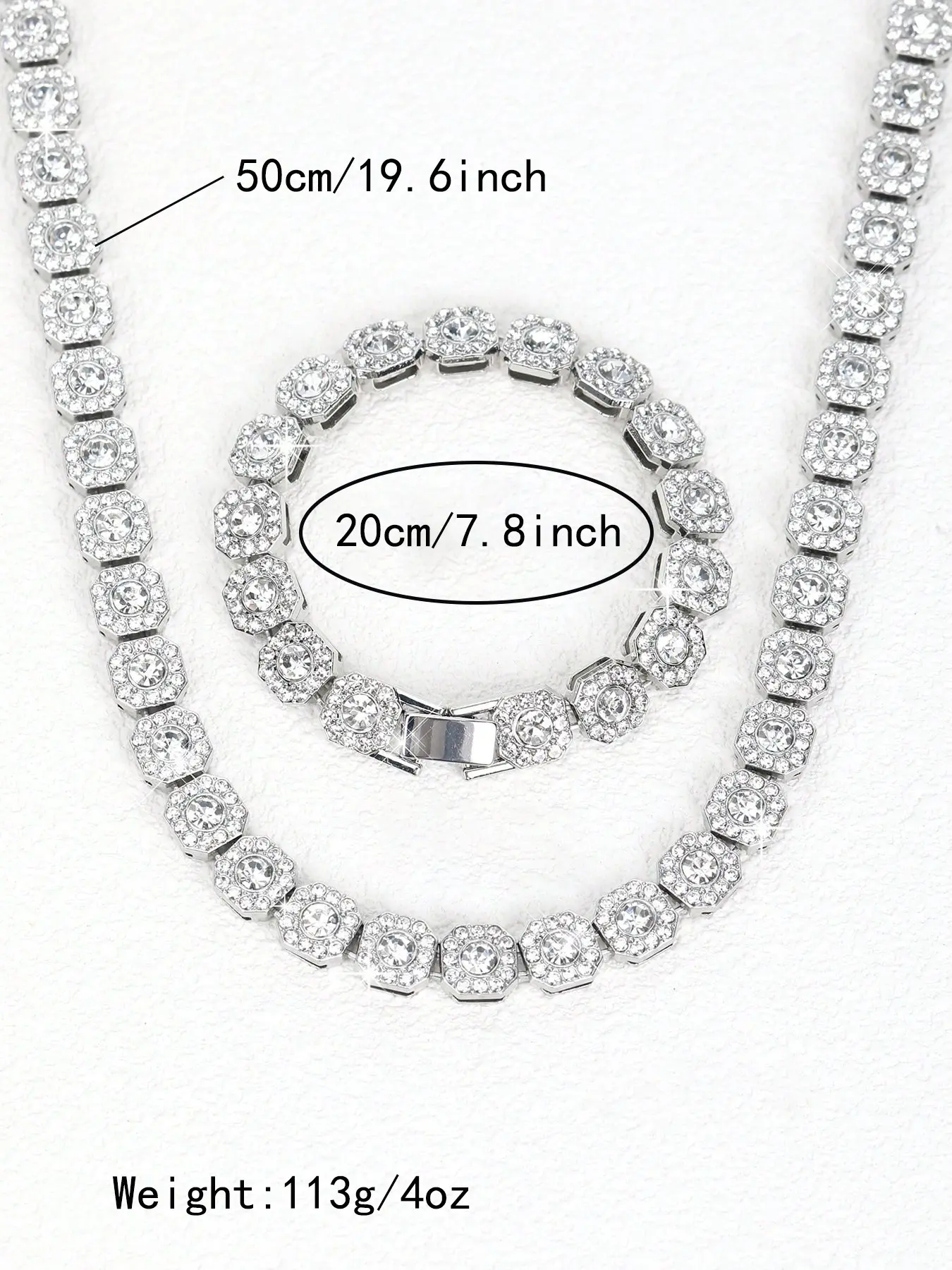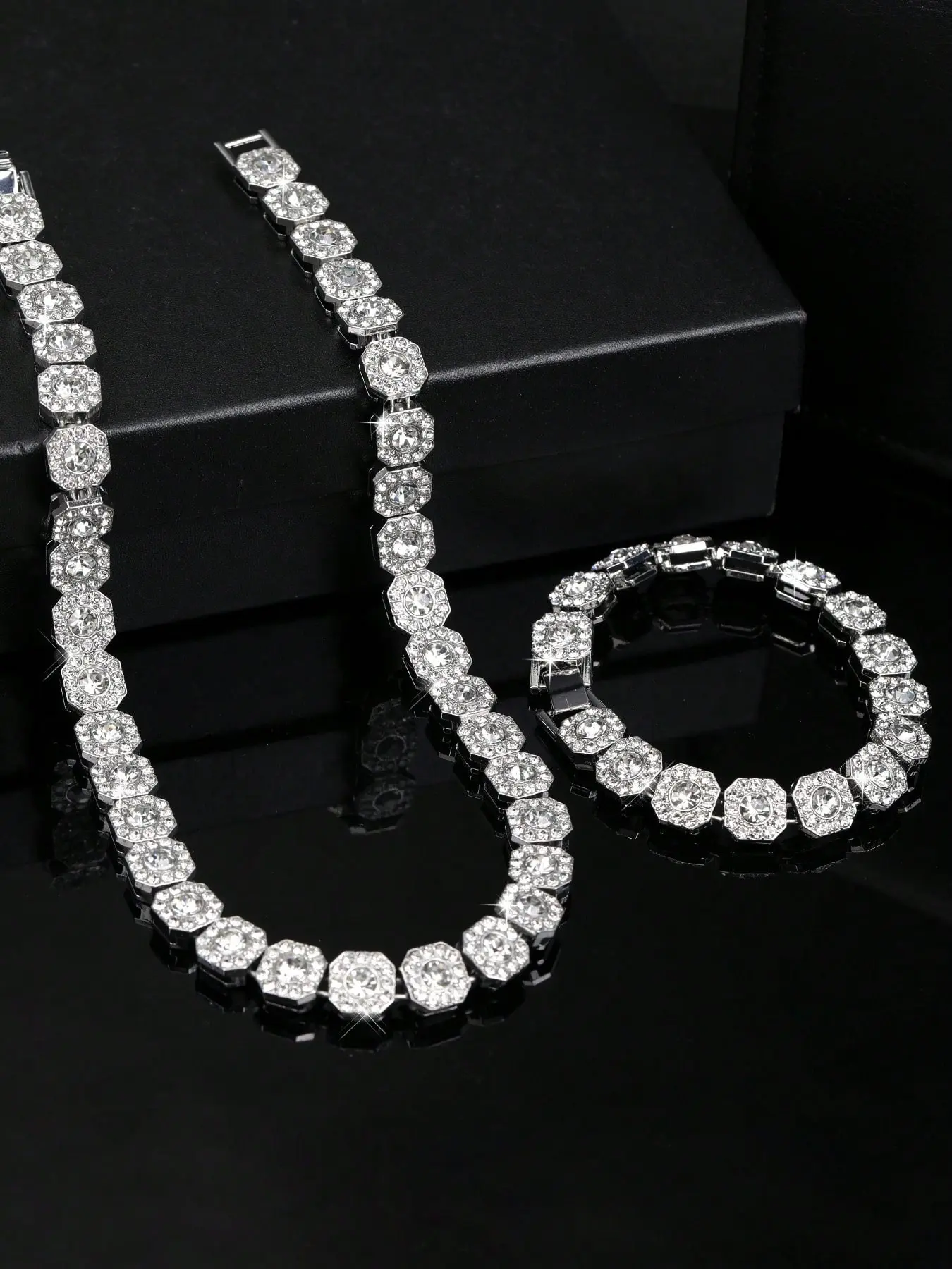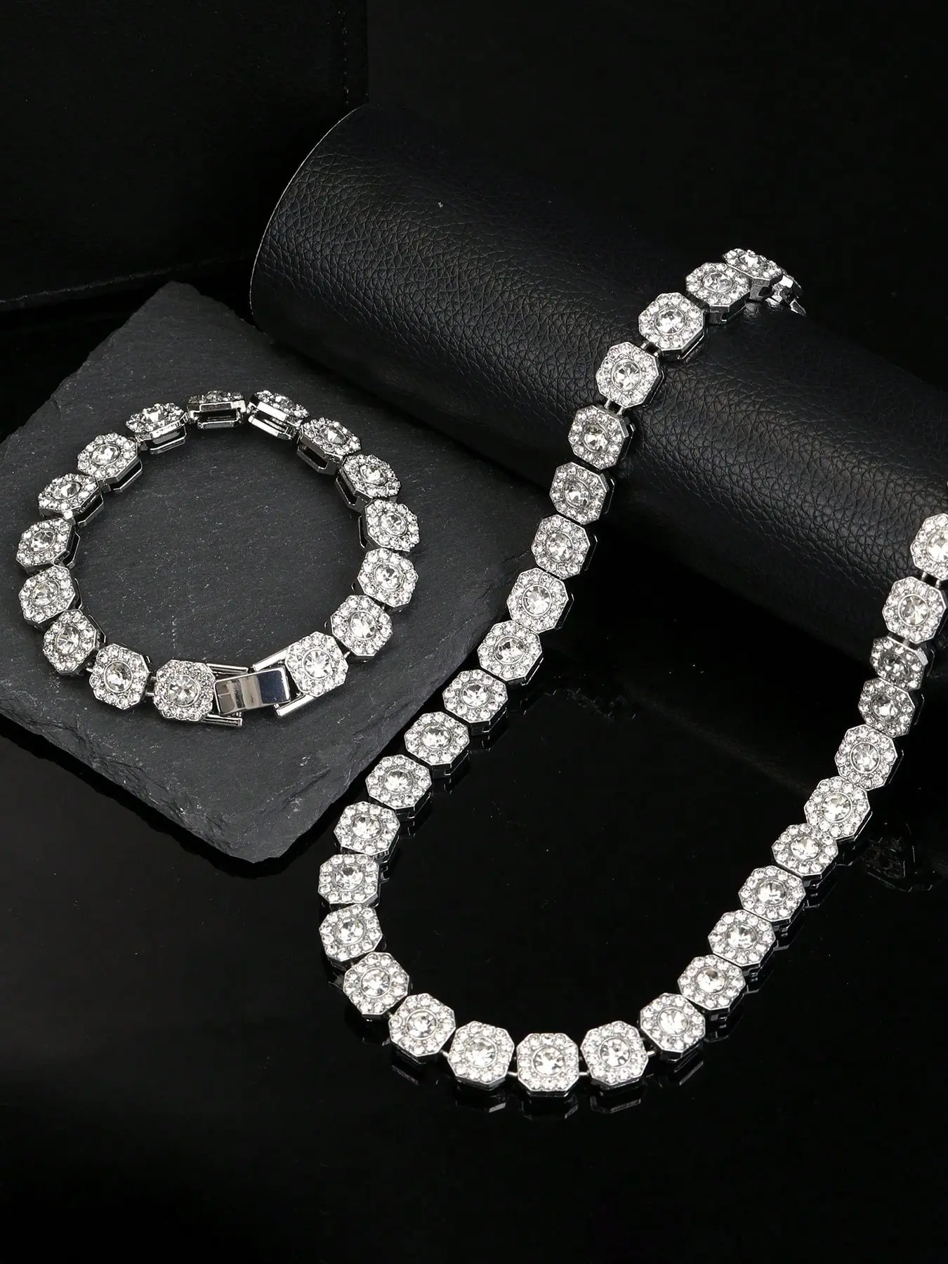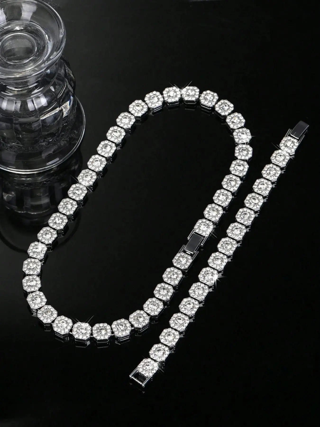 Men's and Women's Rhinestone Cuban Chain Necklace Set, Full Diamond Square Design, Street Party Jewelry, Unique Gift Idea