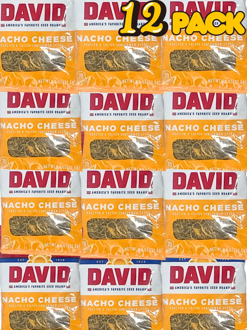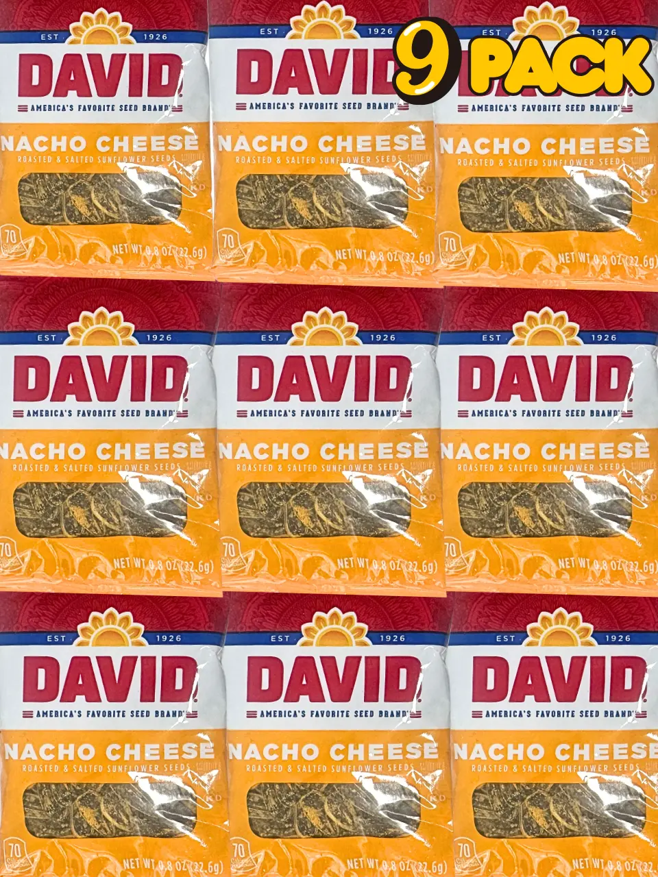 DAVID Nacho Cheese Sunflower Seeds 9 Pack or 12 Pack NYC Bodega Snacks NY Snack Pantry