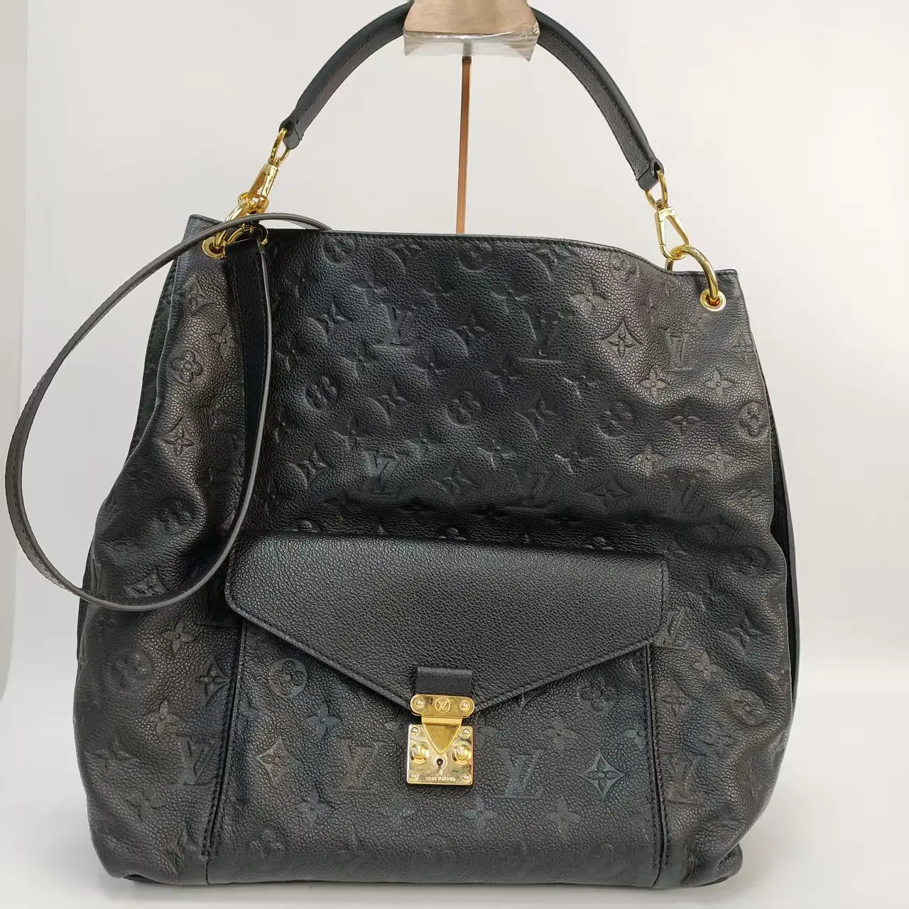 This is an authentic Louis Vuitton Hobo Métis handbag from the iconic Monogram Empreinte collection, a modern take on LV's legendary Pochette Métis design. Crafted from premium black Monogram Empreinte grained cowhide leather with gold-tone hardware, this bag combines timeless LV heritage with everyday functionality, making it a favorite among luxury lovers and commuters worldwide.