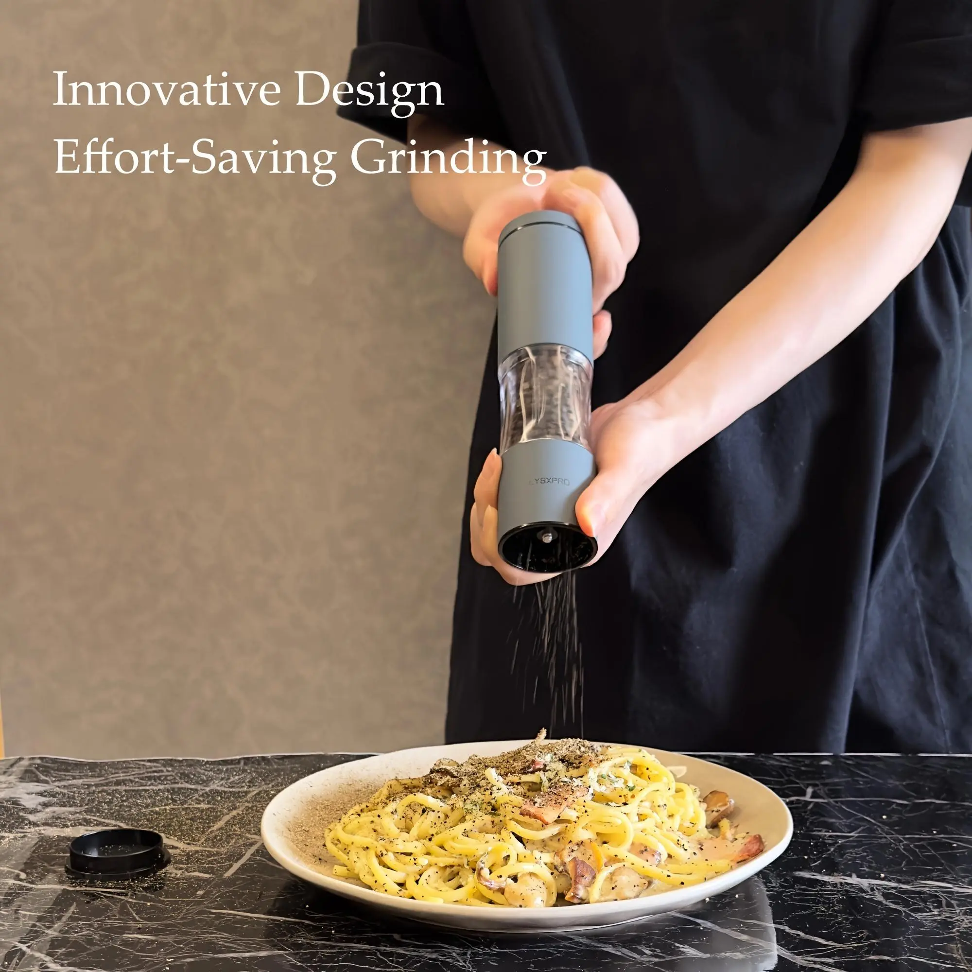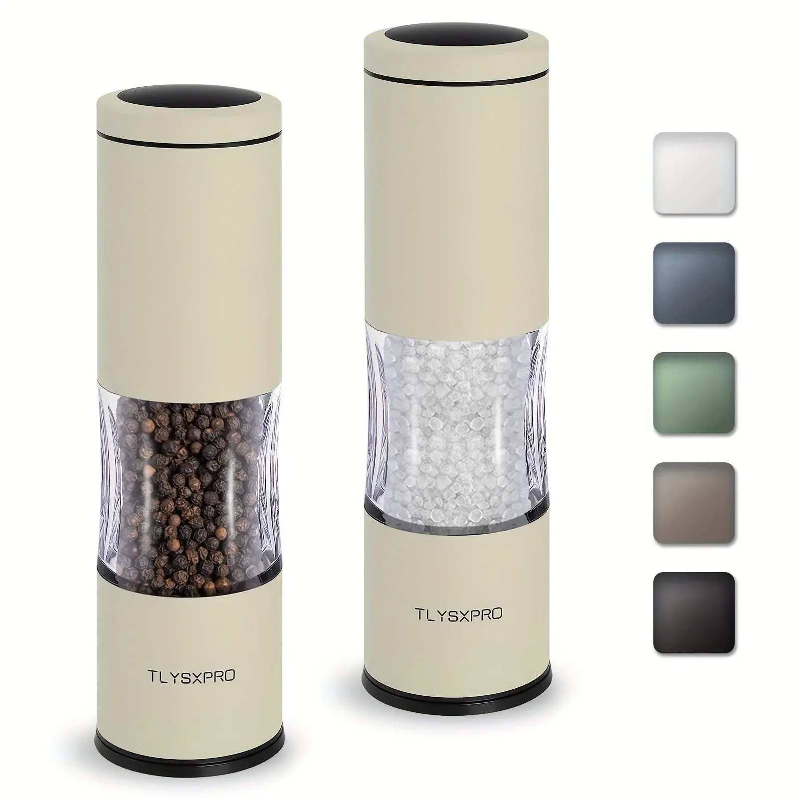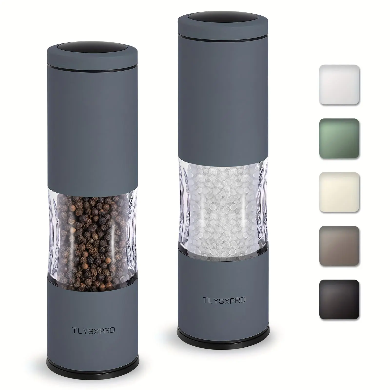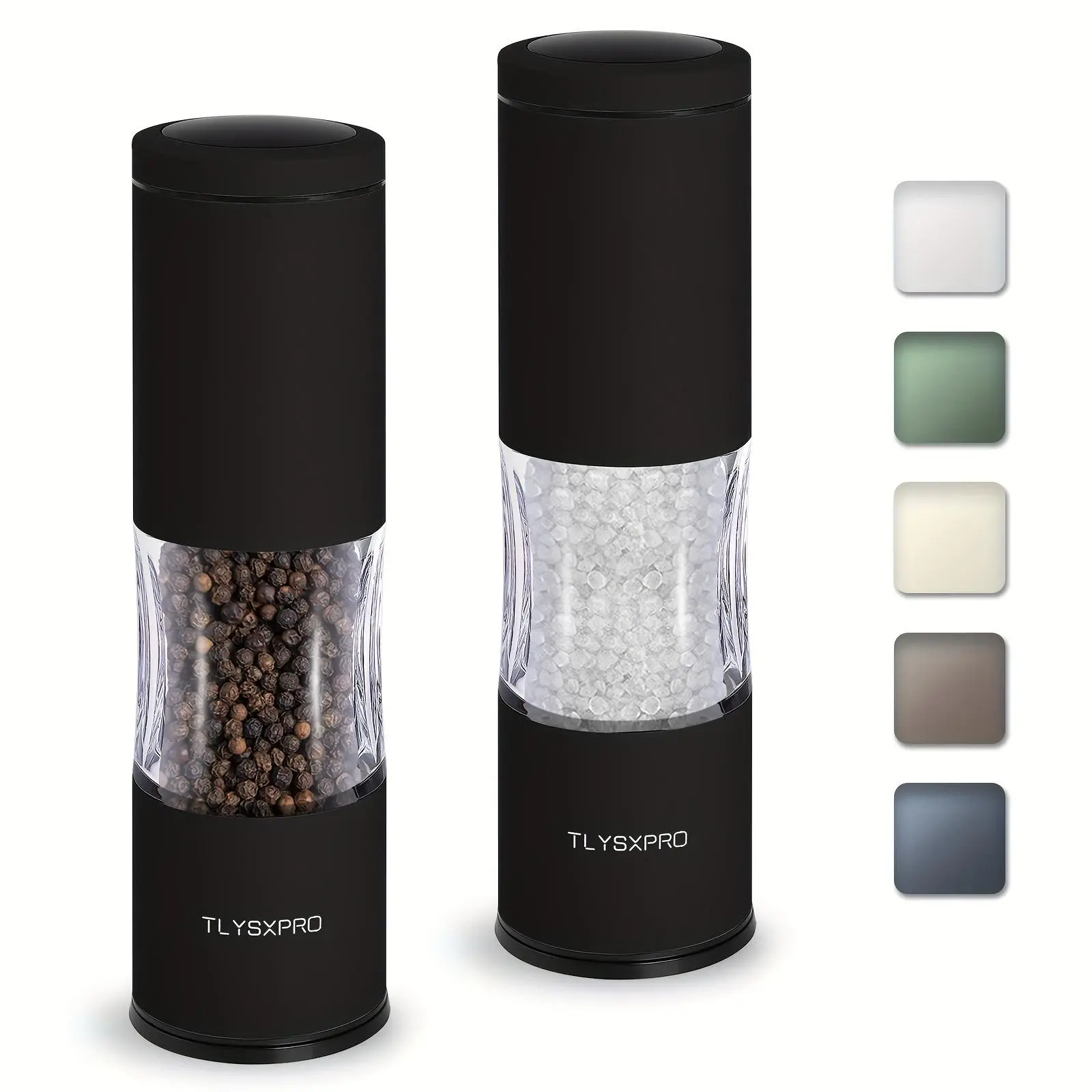 2pcs Manual Salt and Pepper Grinder Set with Adjustable Coarseness - Refillable Pepper Mill & Salt Grinders, Ceramic Core for coarse/finely ground spices, Durable Plastic for Kitchen or for hosting (Christmas, Thanksgiving, Dinner Parties