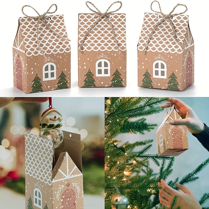 10pcs Gift Boxes, Christmas Creative Kraft Paper Gift Packaging Boxes, Small House Candy Boxes Cookie Boxes Jewelry Boxes