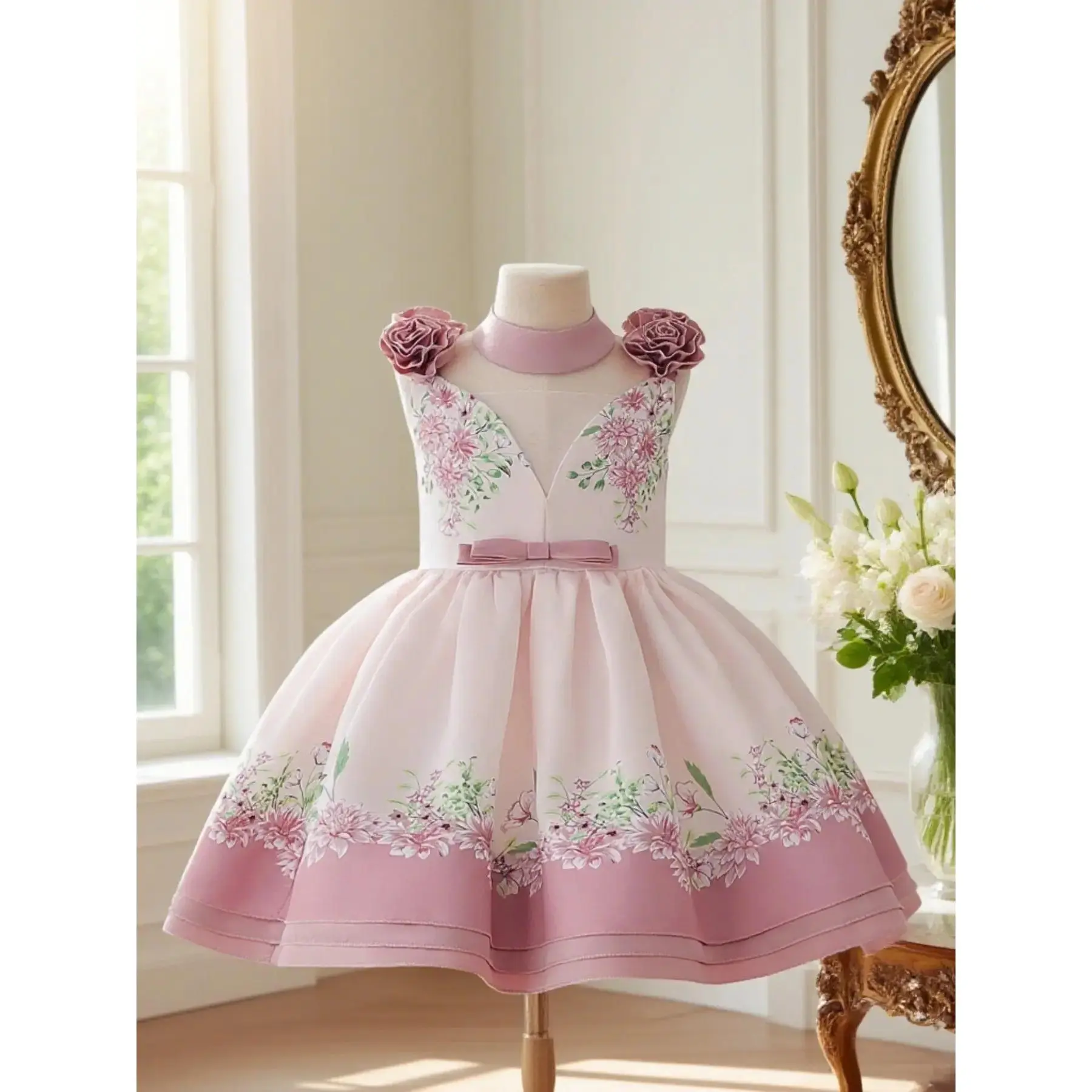 Girls dresses girls party dresses flower girl elegant children's clothing print design elegant high-end dress skirt