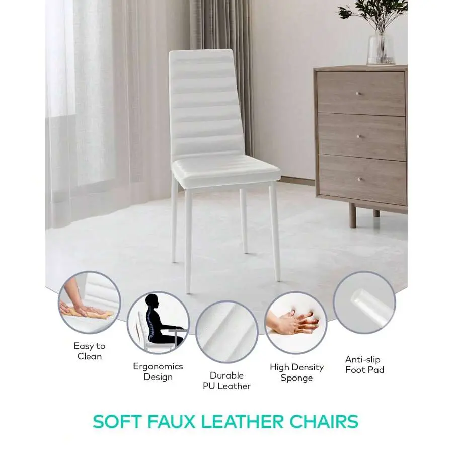 Material: MDF (Table Frame) + Glass (Table Top) + PU Leather (Chair Upholstery)