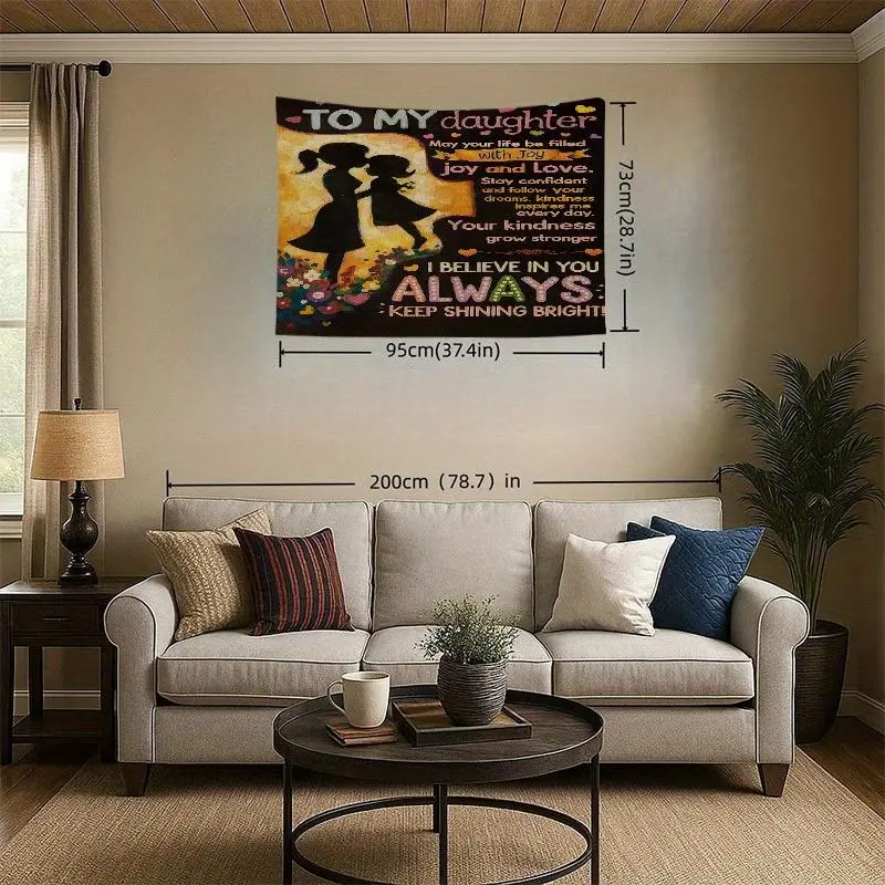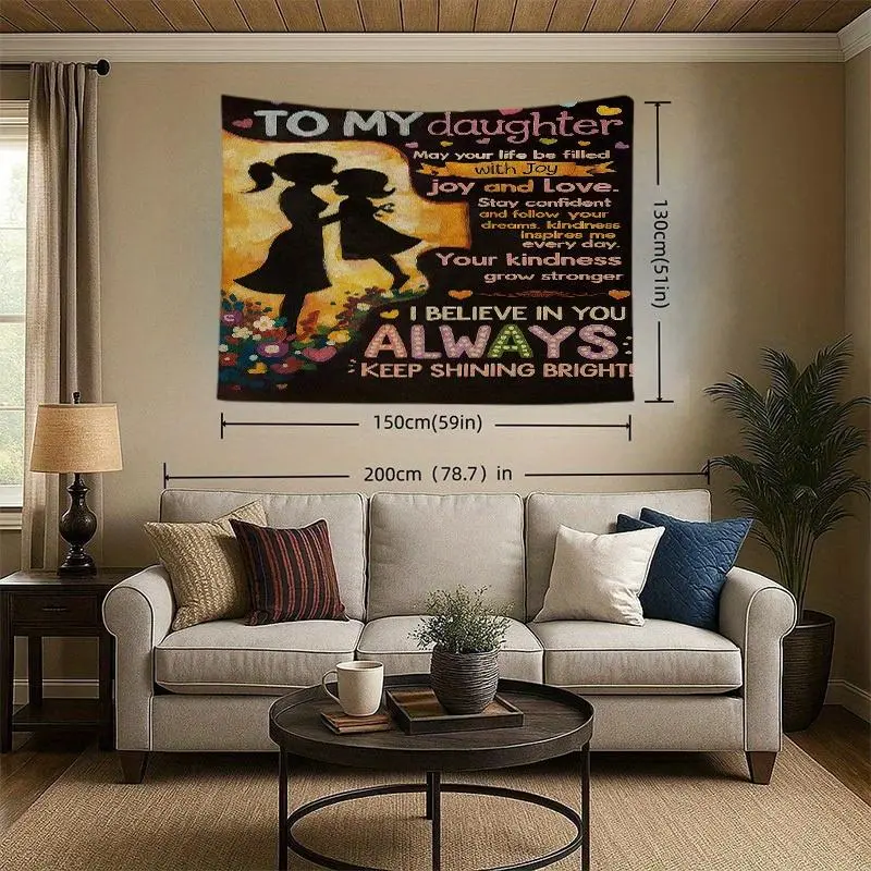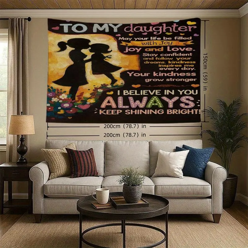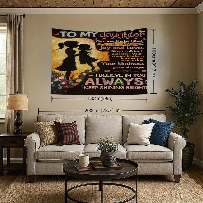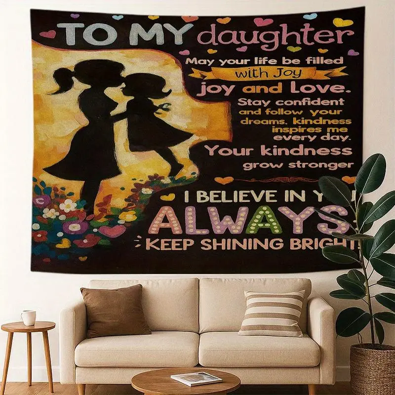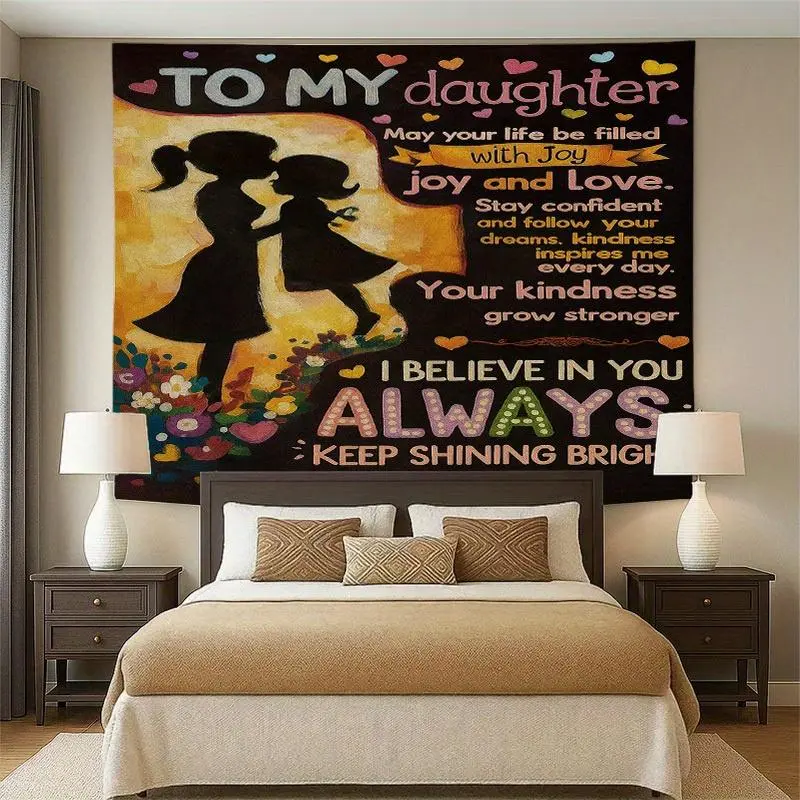 1pc Mother Daughter Silhouette Wall Tapestry - Heartwarming Mother-Daughter Quotes & Rhyme-Style Text, Room Decor with Free Hanging Kit, 100% Polyester Fabric for Bedroom, Dorm, Backdrop (to My Daughter/