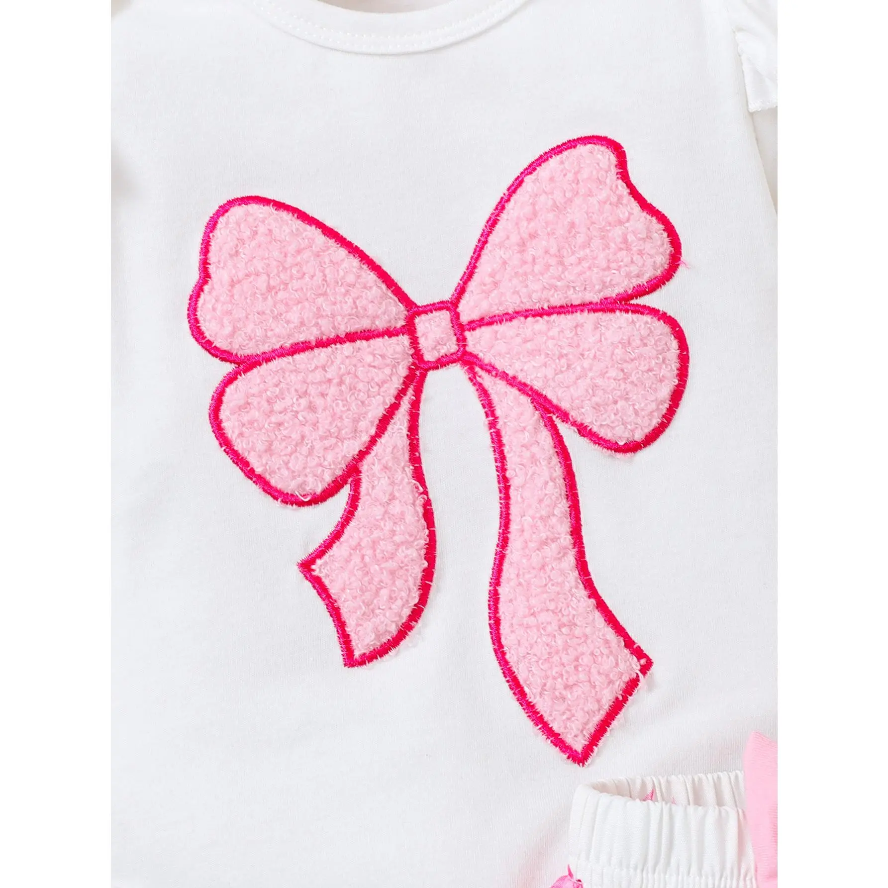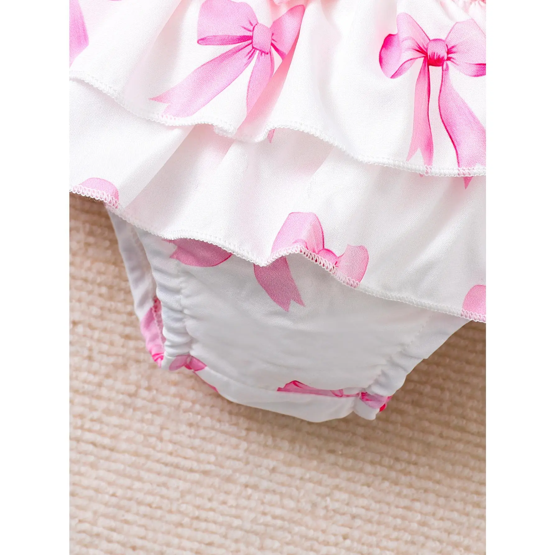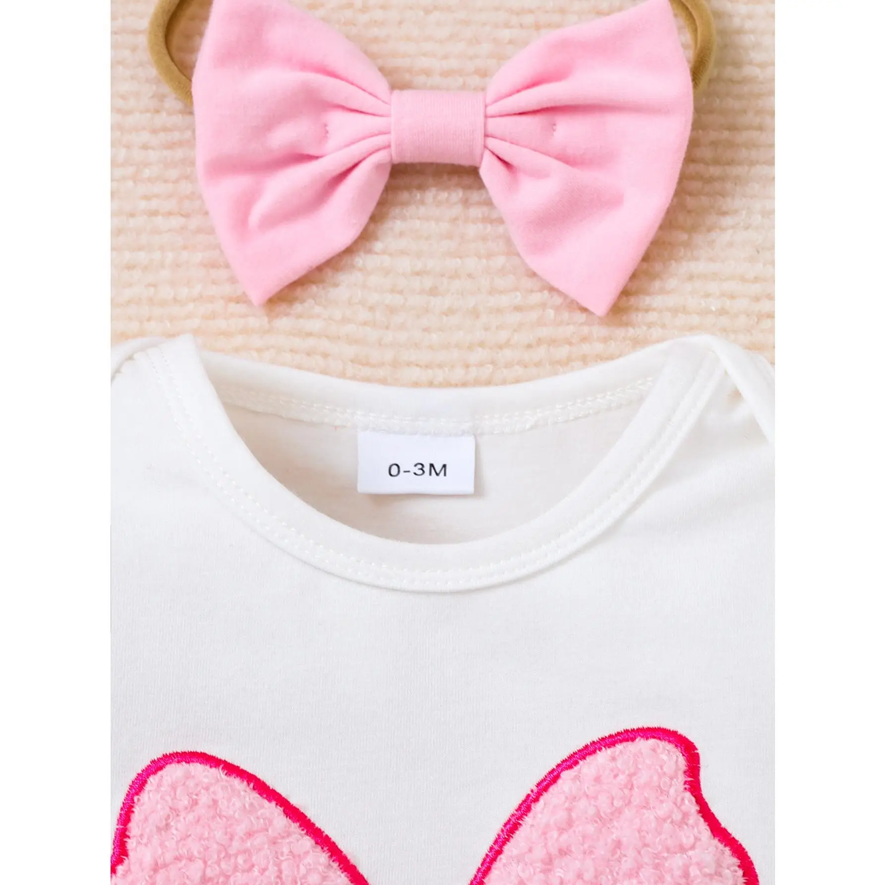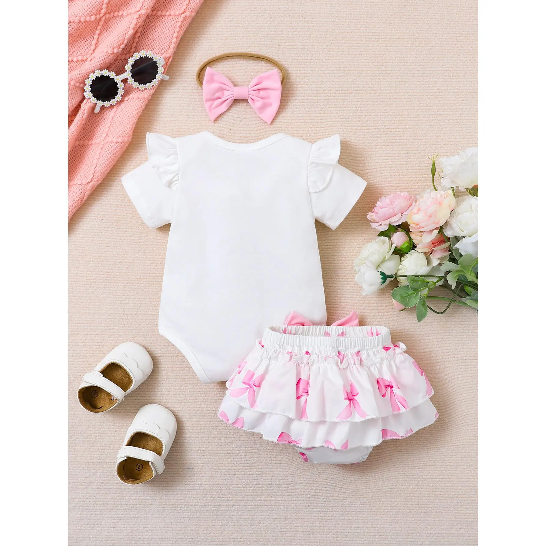 This sweet 3-piece baby girl outfit set is perfect for your little princess from newborn to 18 months old, combining comfort, cuteness, and style for everyday wear, photoshoots, or special occasions. The set includes a soft short-sleeve bodysuit with delicate ruffled sleeves and a large, textured pink bow appliqué at the front, made from breathable, skin-friendly cotton blend fabric that’s gentle on baby’s sensitive skin. The envelope neckline and snap bottom closure make dressing and diaper changes quick and easy. Paired with the bodysuit is a charming skirt, featuring double-layer ruffled edges and an all-over pink bow print, with a large matching pink bow at the waist for an extra feminine touch. The elastic waistband ensures a snug, comfortable fit without digging into baby’s tummy. To complete the look, the set comes with a soft stretchy headband adorned with a classic pink bow, perfectly matching the outfit and adding a sweet finishing touch. Available in sizes 0-3M, 3-6M, 6-9M, 9-12M, and 12-18M, this set is an ideal gift for baby showers, birthdays, or any special milestone.