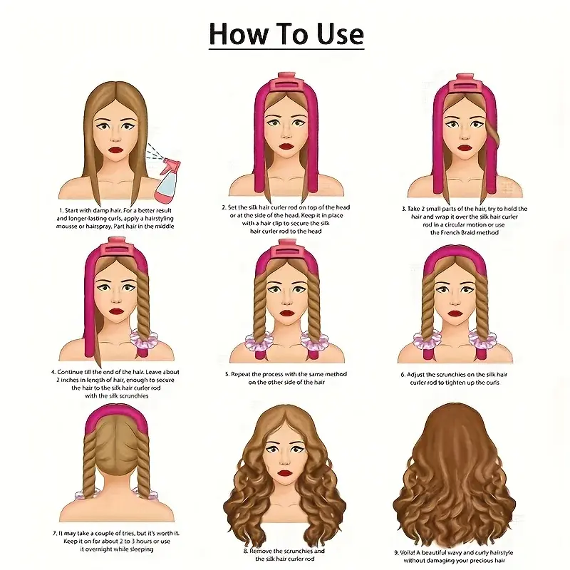 Tired of frying your hair just to get beautiful curls? 😩 This satin heatless curling set lets you style while you sleep, so you wake up with soft, bouncy waves — without a single degree of heat damage.