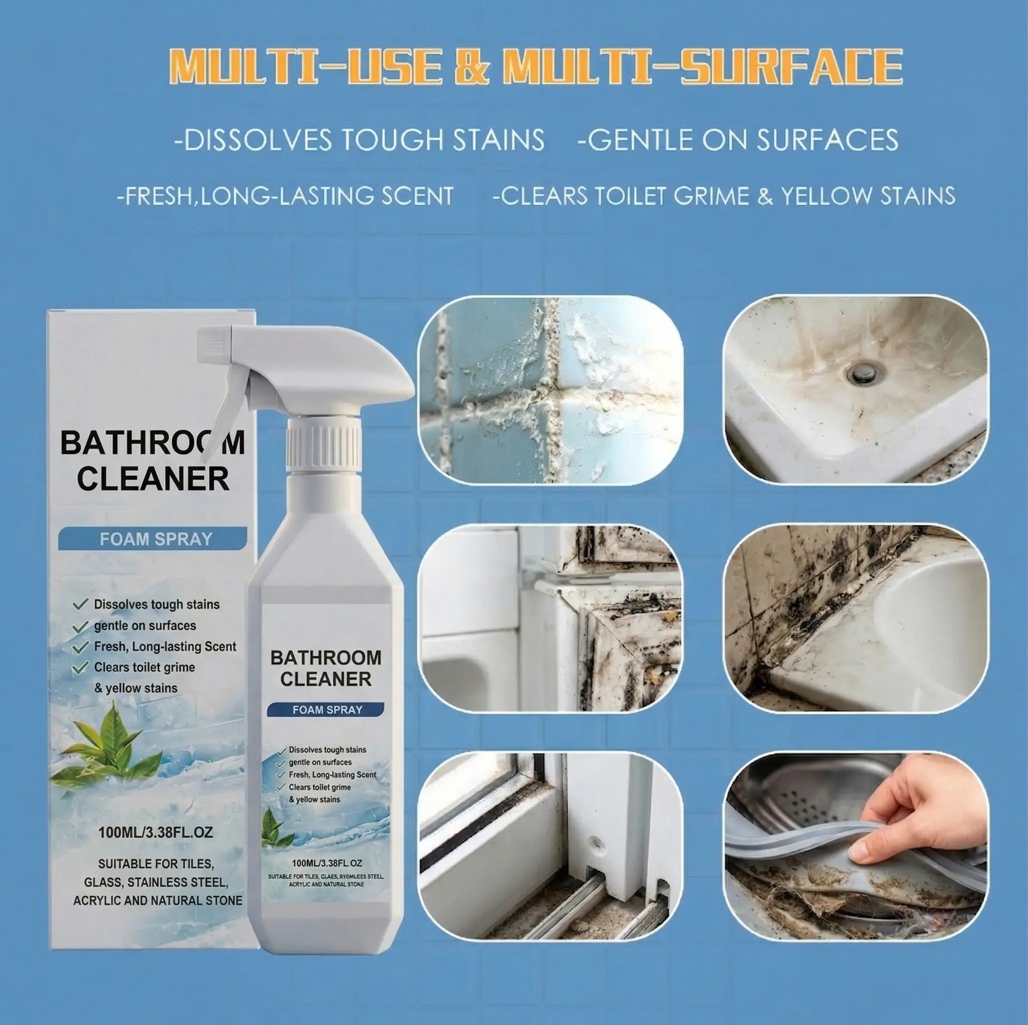Bathroom Cleaner Foam Spray (100ml) - Citric Acid Formula for Hard Water Stains, Toilet Grime & Soap Scum on Multi-Surfaces
