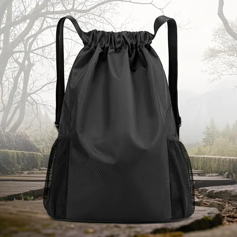 5-color Options 8.45gal Unisex Drawstring Backpack - Large Capacity Gym Bag with Mesh Side Pockets, Adjustable Shoulder Straps and Softshell Design, Suitable for Travel, Sports, and Fitness Training. Black, Practical Pocket Design, Travel Backpack