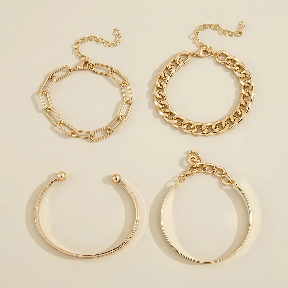 This bracelet set is a must-have for any fashion-forward woman. The punk-style design complements any outfit. Whether for a casual day or a special occasion, this set will enhance your look. Stay stylish and confident with this timeless accessory.