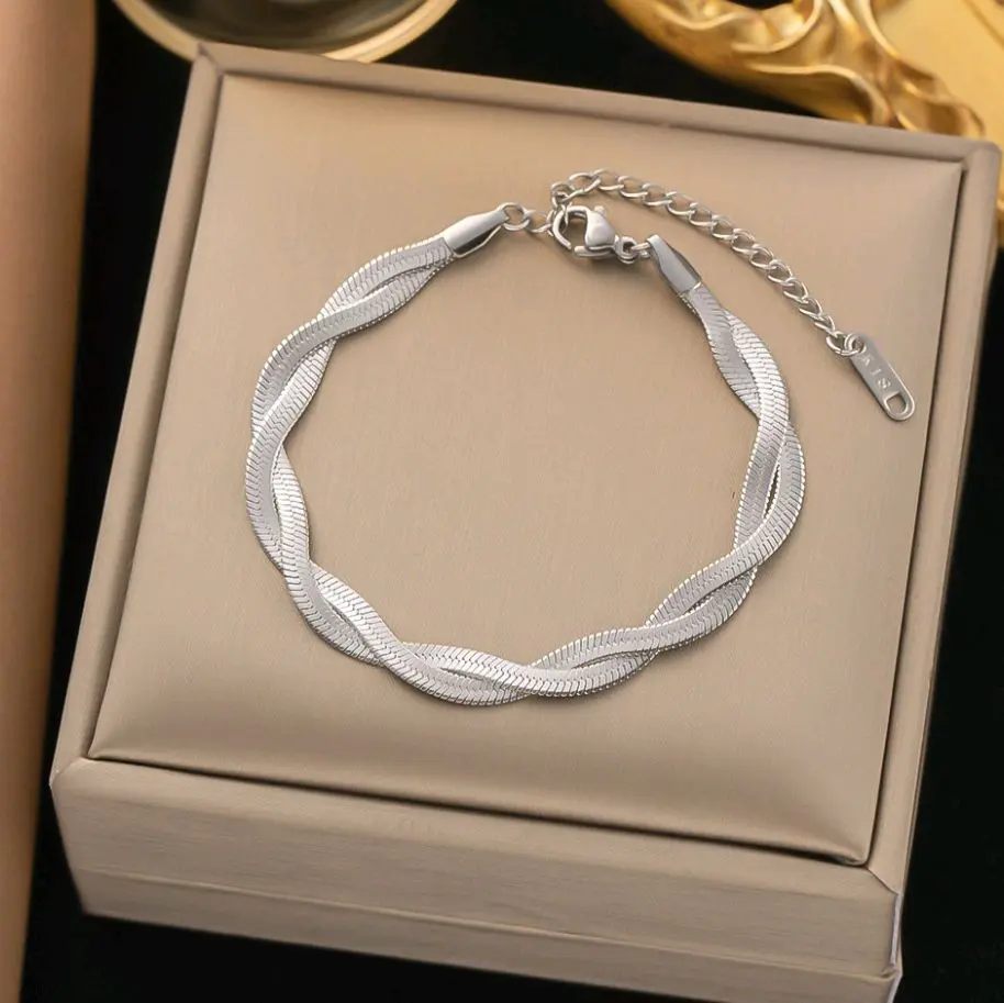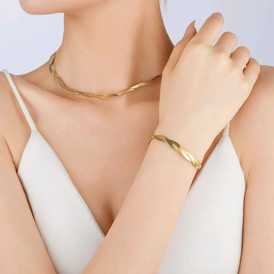 🐍 Double Snake Bracelet - Gold Color Twisted Chain Design