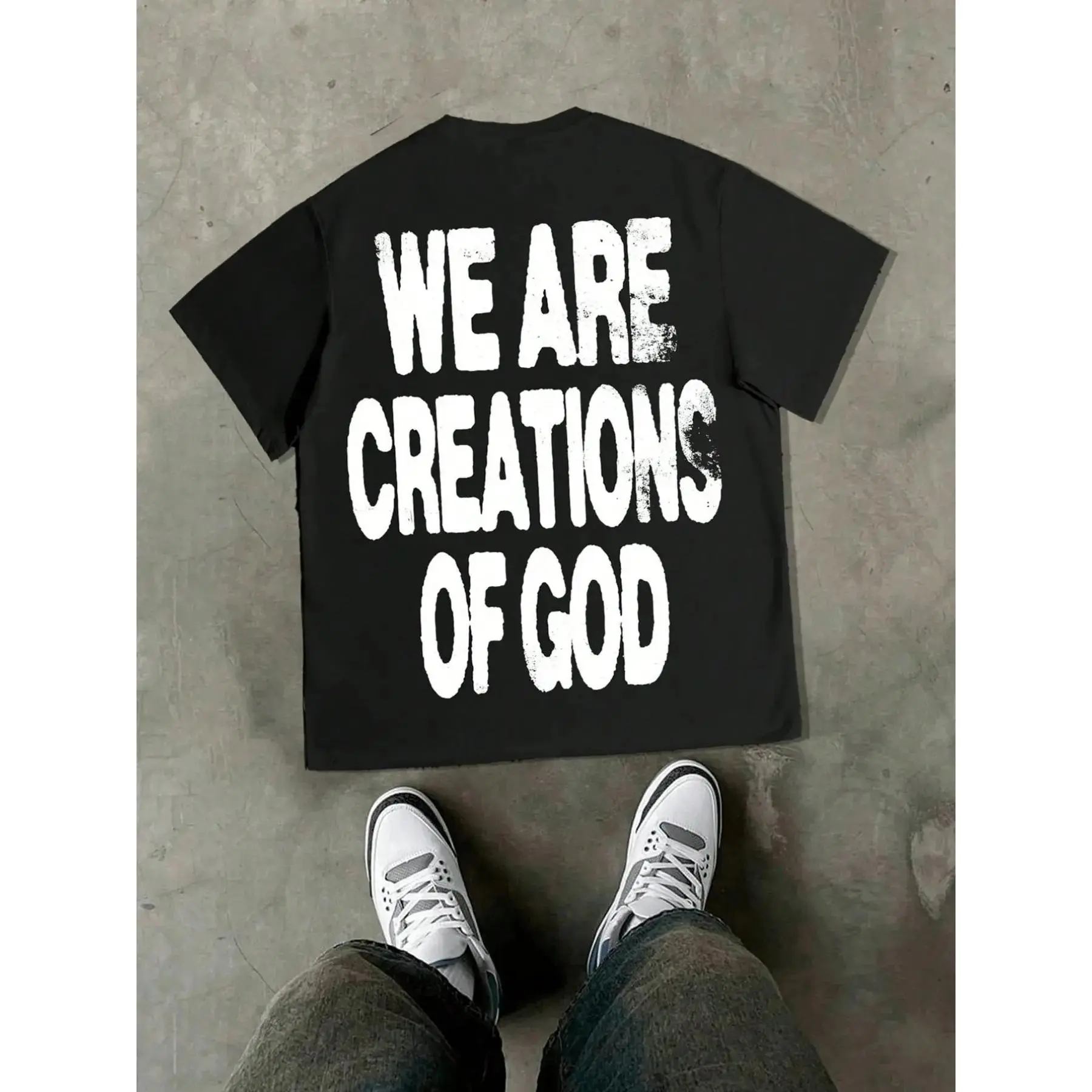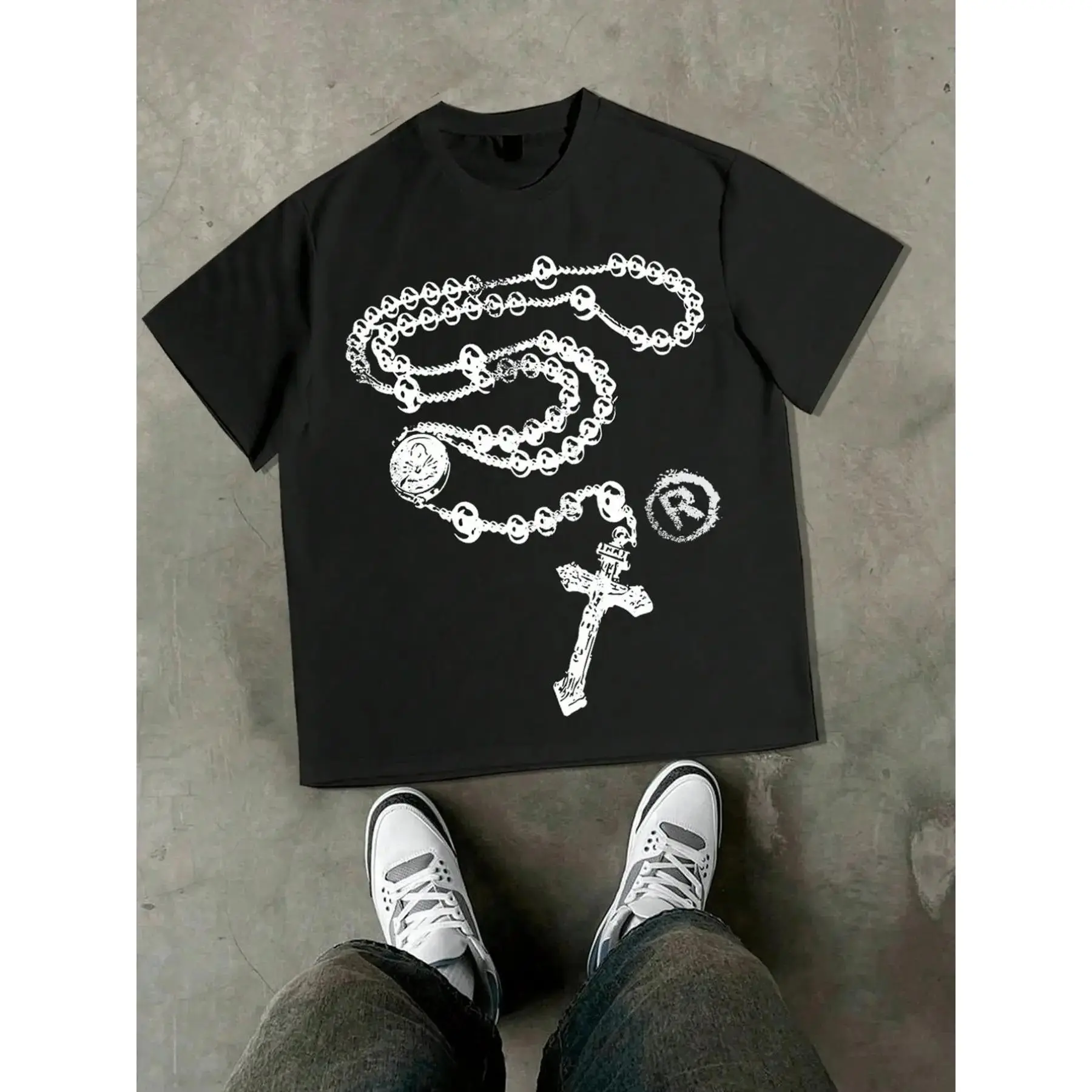 5. Men's Loose Fit Fashion Print T-Shirt, Cross Necklace Pattern, All-Season Casual Wear, Unisex Young College Street Style