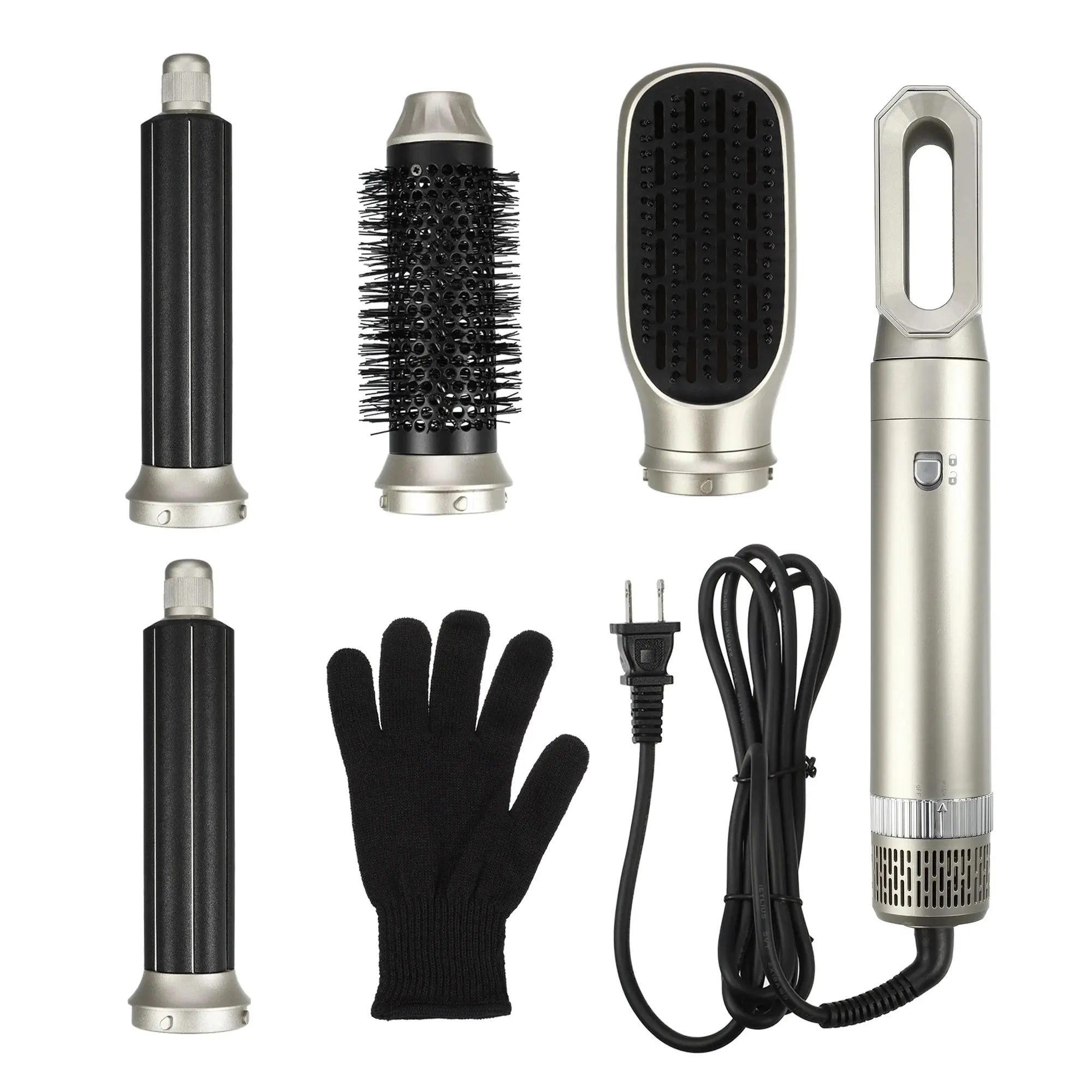 · Unique Bargains Hot Air Brush 5 in 1 Hair Dryer Brush Blow Dryer Brush Detachable Hair Dryer Styler Set Champagne