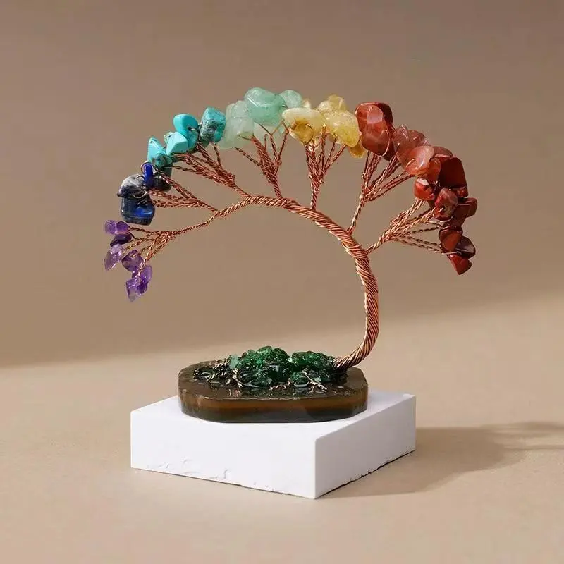 Multicolor Crystal Life Tree, Agate Tail Tree, Handwoven, Desktop Decor, Crystal Micro Landscape, Wealth Attracting Ornament, Home Office Car Gift