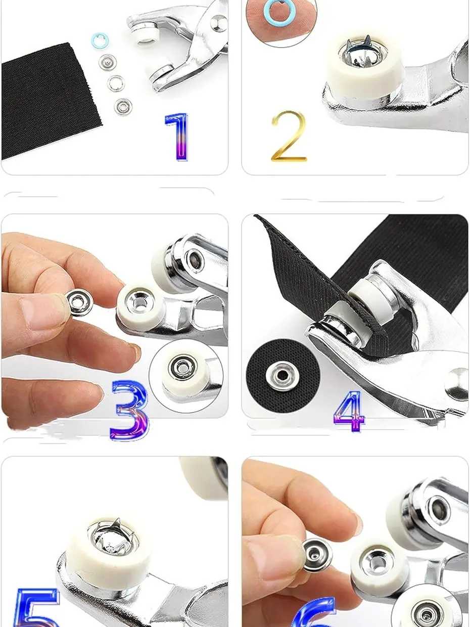 This all-in-one kit includes durable metal snap buttons and an easy-to-use installation plier tool, allowing you to attach snaps quickly without sewing.