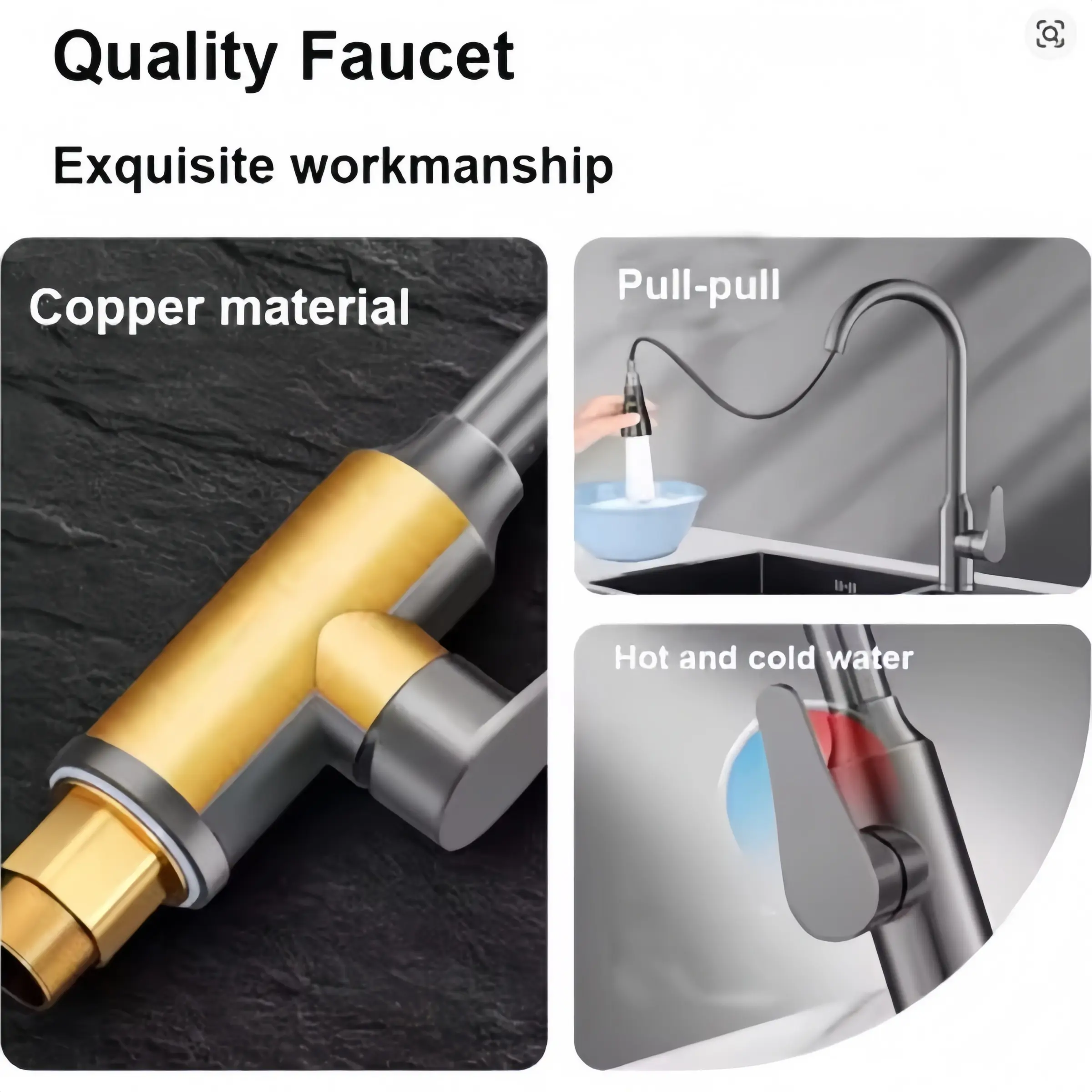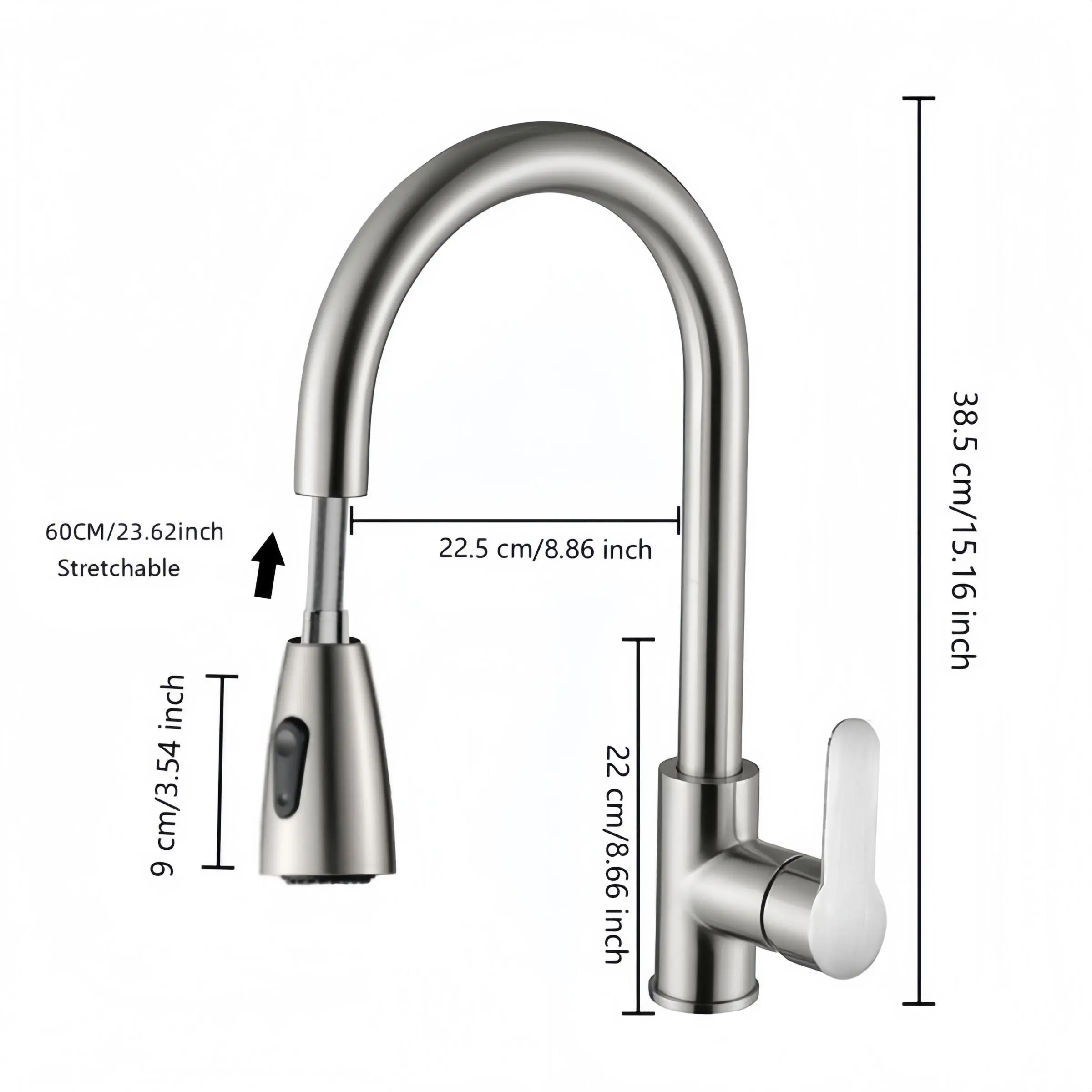 High Pressure Kitchen Faucet, Two Modes, 360 Degree Rotating Design, Extensible Shower Function, Durable Structure for Daily Use