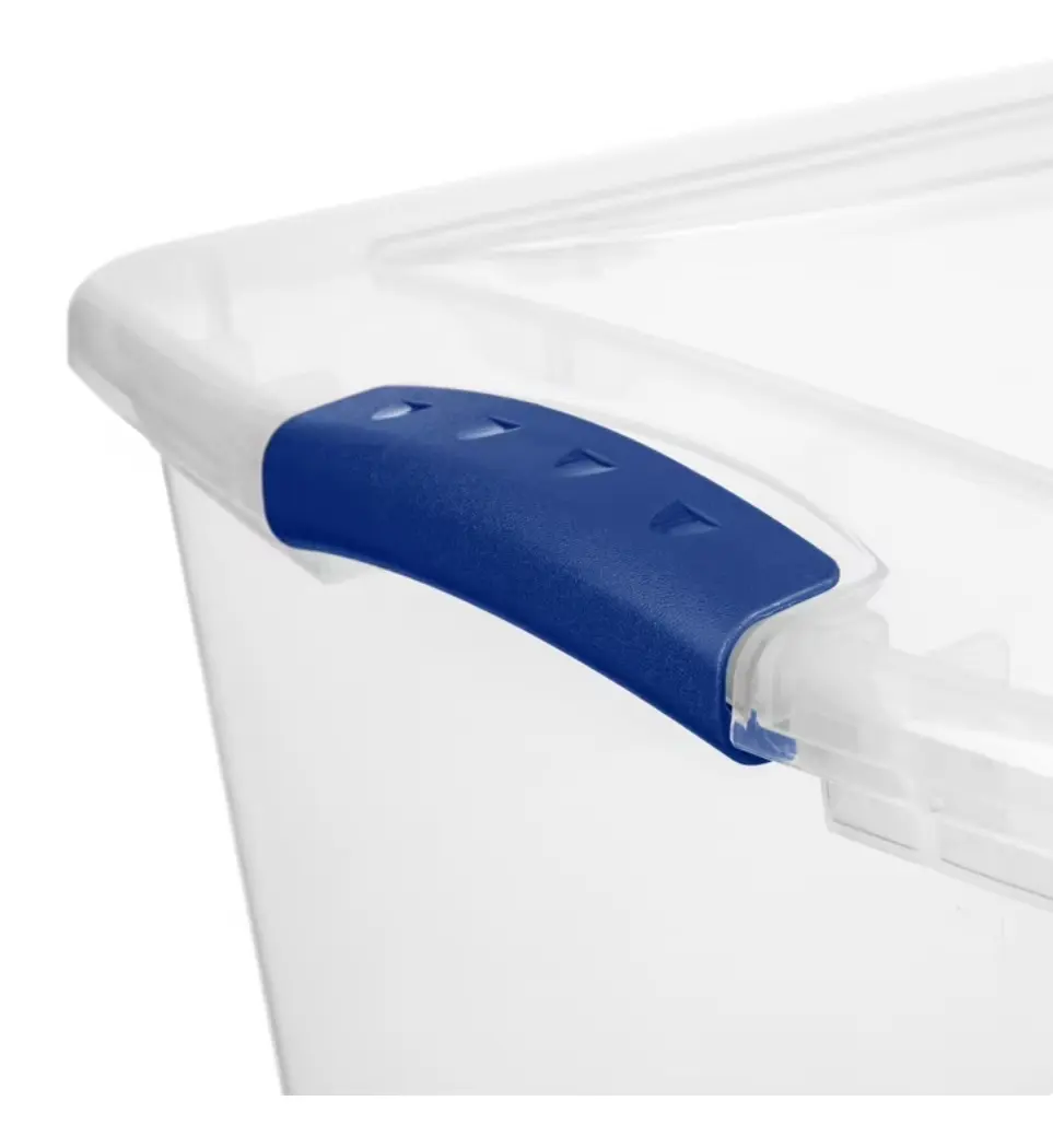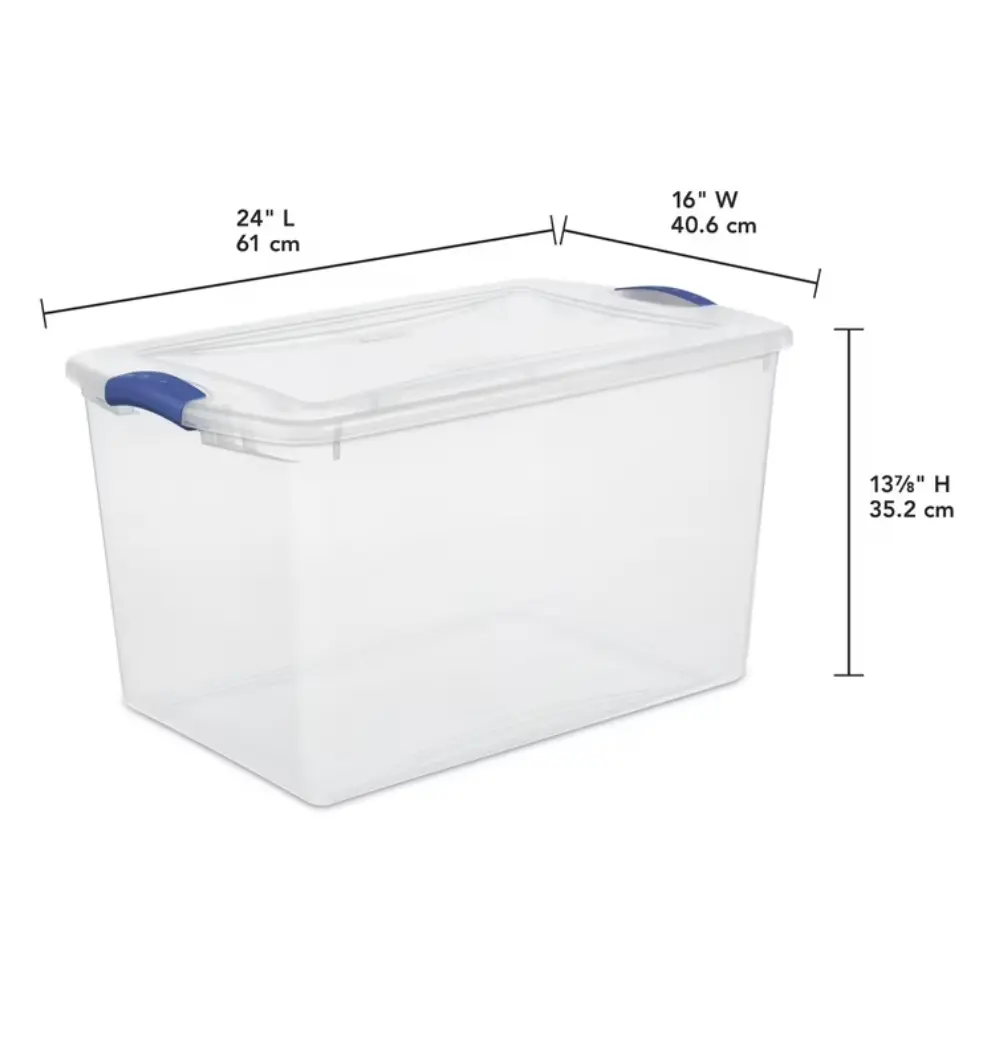 ·Sterilite 66 Quart Latch Box, Clear Plastic Storage Bin with Clear Lid, Blue Latch