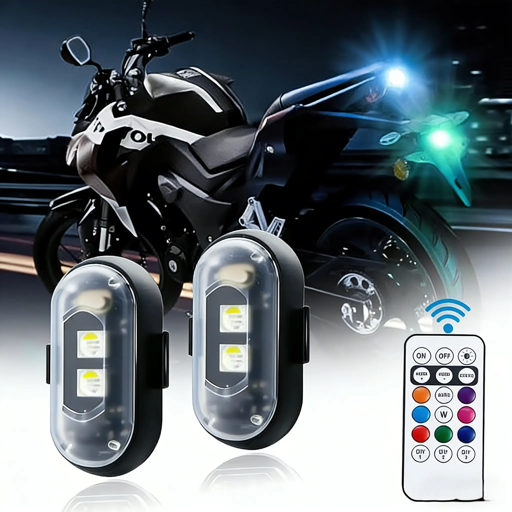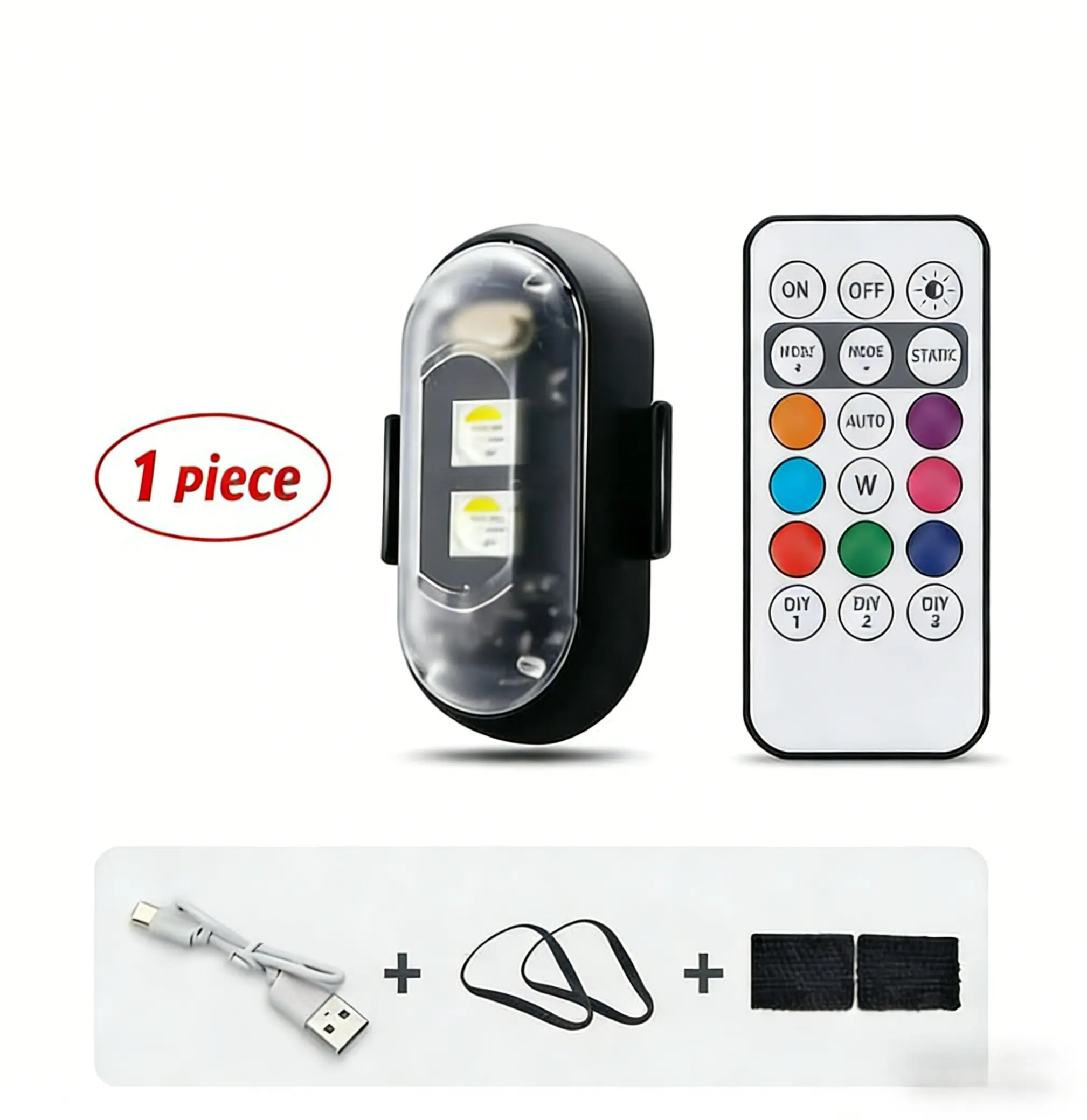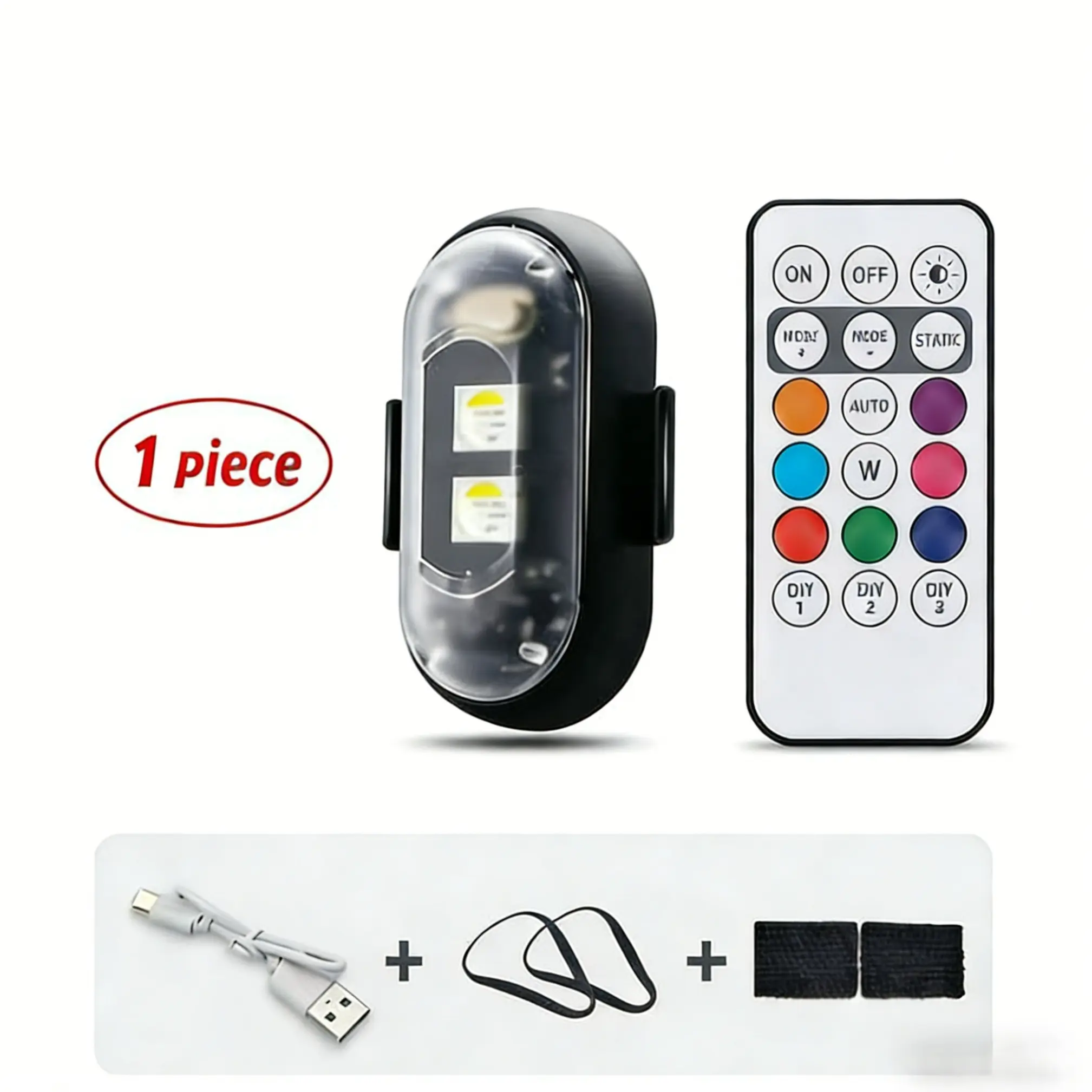 Enhance your ride with these Aircraft Style LED Strobe Lights. Perfect for motorcycles, cars, bikes, and ATVs, these lights offer a striking 7-color RGB display. They're designed for anti-collision warning, ensuring safety on the road. The wireless remote control adds convenience, allowing easy operation. A must-have gadget for riders and drivers, these lights are rechargeable, ensuring long-lasting use. Stay visible and safe with this innovative beacon.