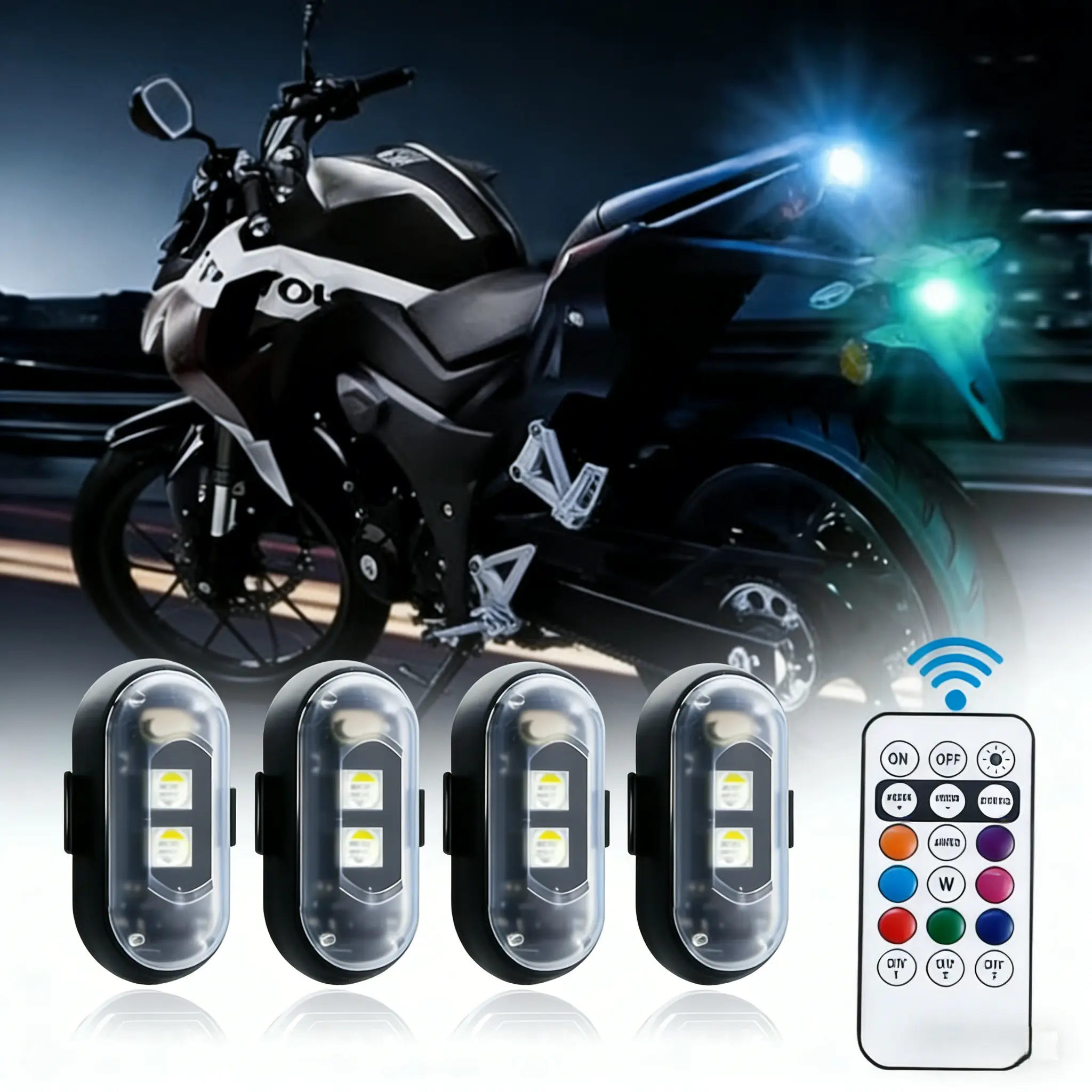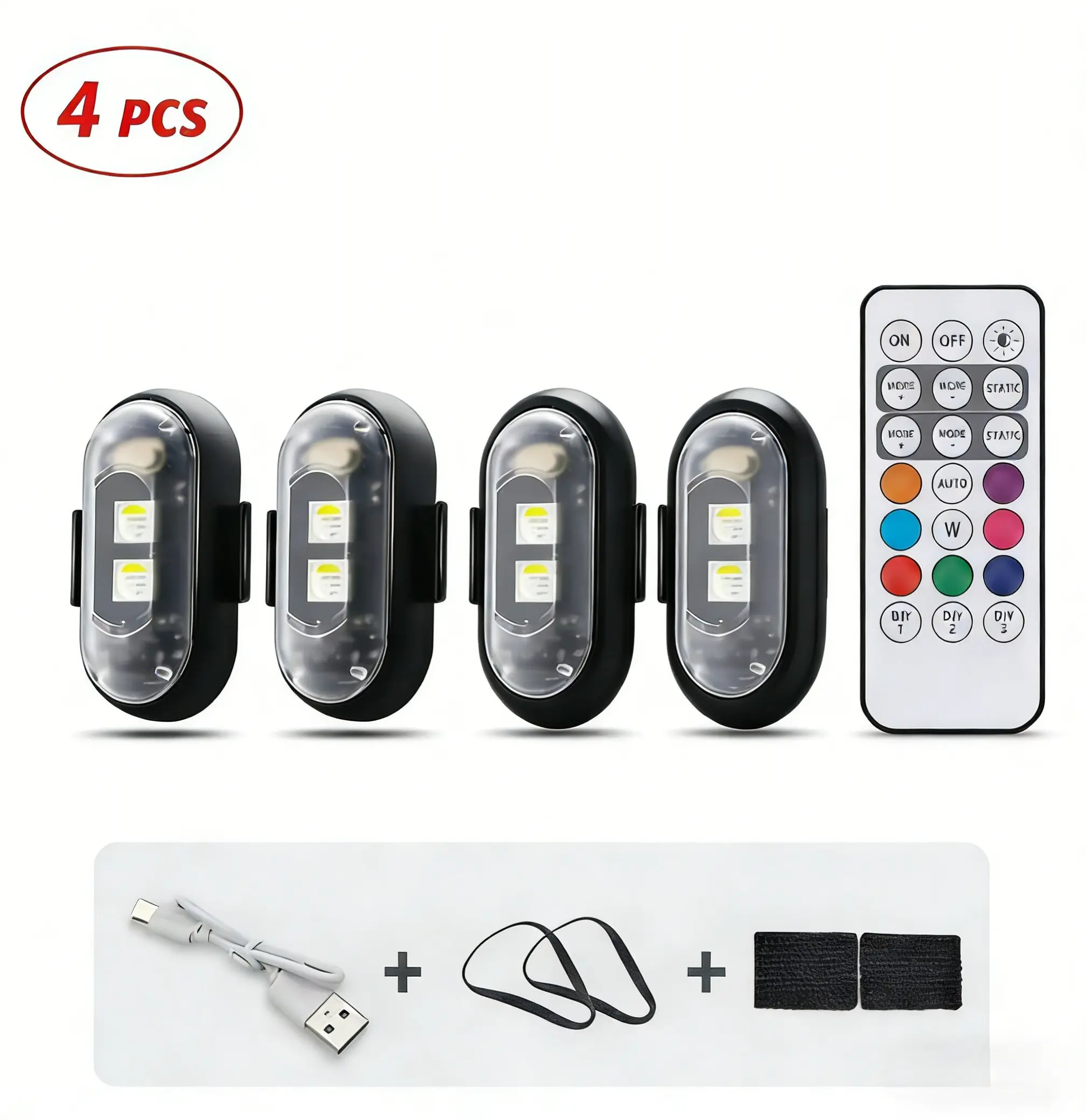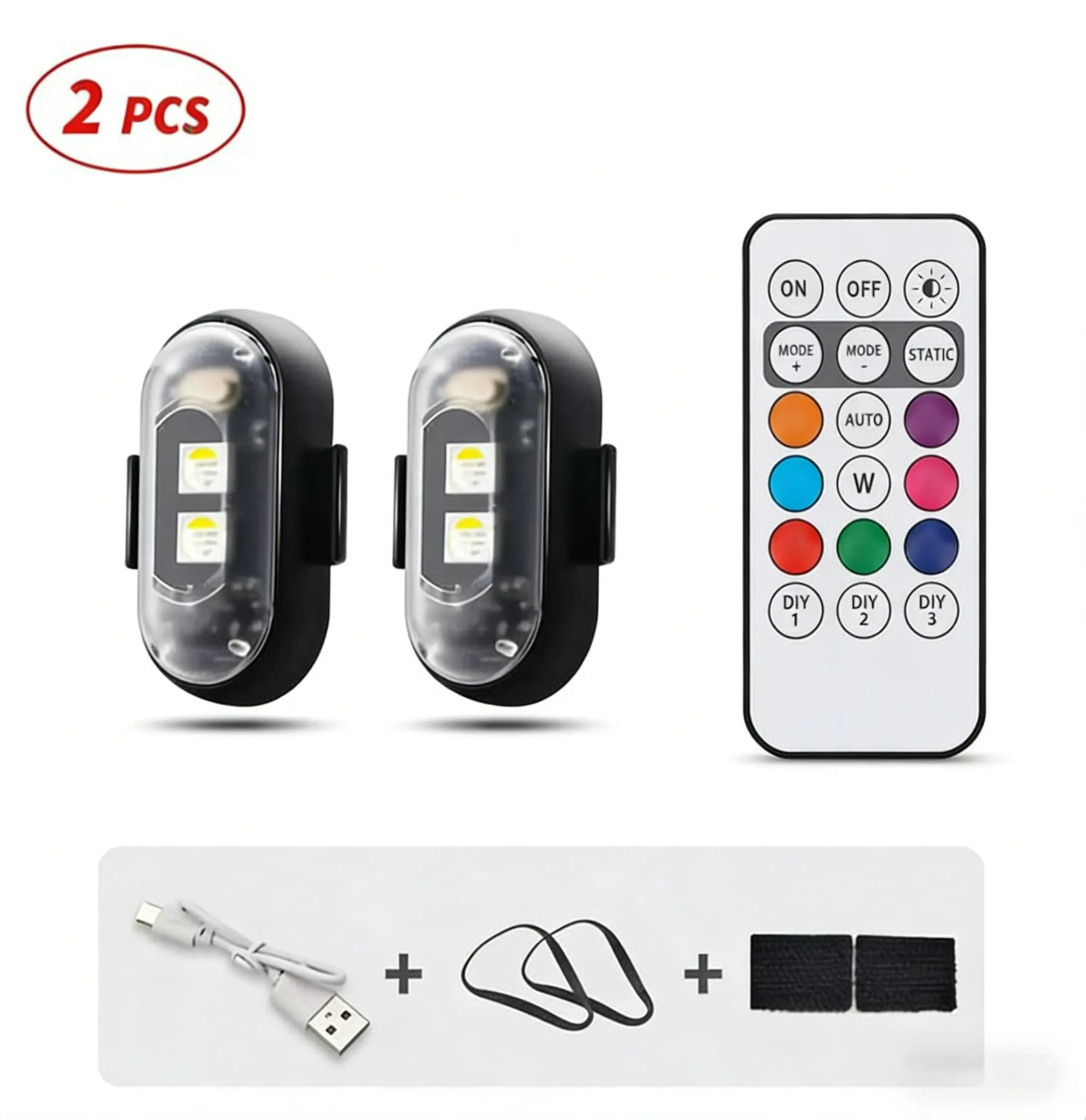 Enhance your ride with these Aircraft Style LED Strobe Lights. Perfect for motorcycles, cars, bikes, and ATVs, these lights offer a striking 7-color RGB display. They're designed for anti-collision warning, ensuring safety on the road. The wireless remote control adds convenience, allowing easy operation. A must-have gadget for riders and drivers, these lights are rechargeable, ensuring long-lasting use. Stay visible and safe with this innovative beacon.